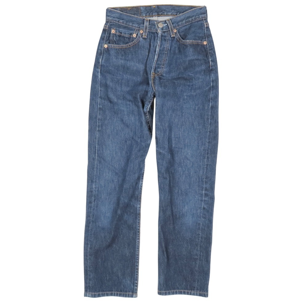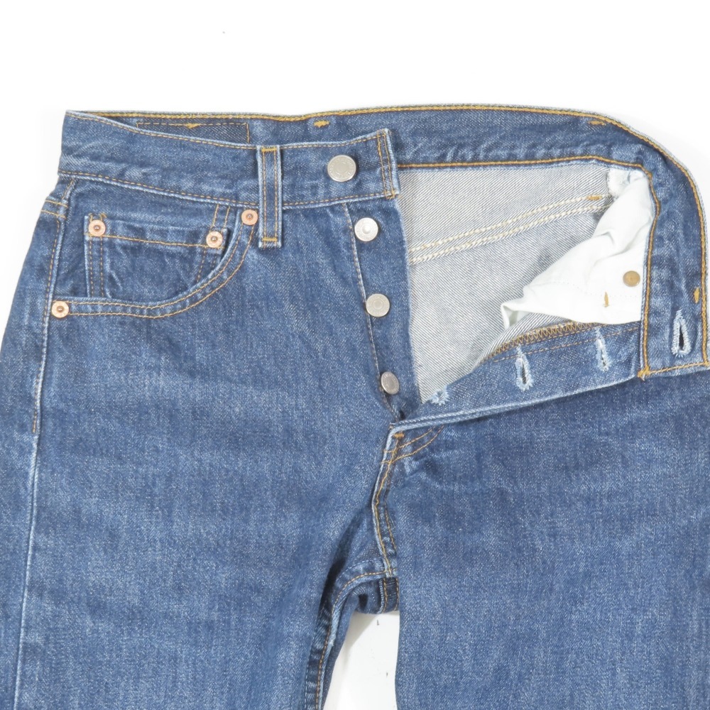 新品同様 LEVI'S リーバイス 501 デニム パンツ ロゴ 刻印 ボタン ワッペン 刺繍 ジーンズ Gパン ボトムス W26 青 インディゴブルー