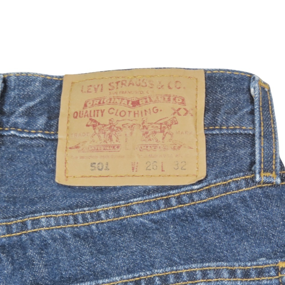 商品名:LEVI'S リーバイス 501 デニム パンツ ロゴ 刻印 ボタン ワッペン 刺繍 ジーンズ Gパン ボトムス W26 青 インディゴブルー