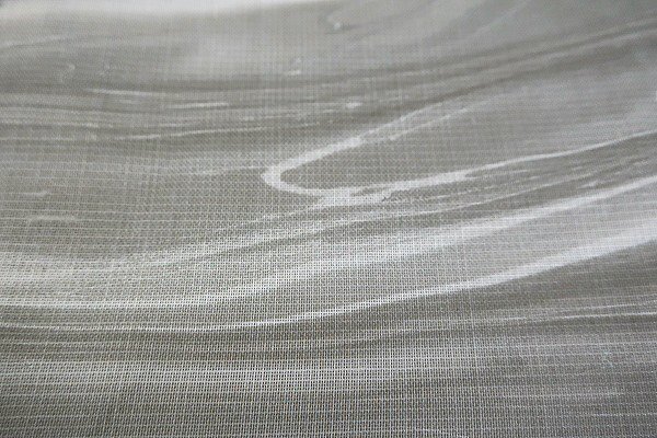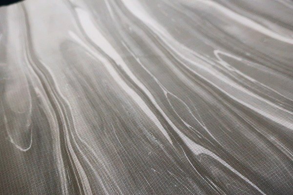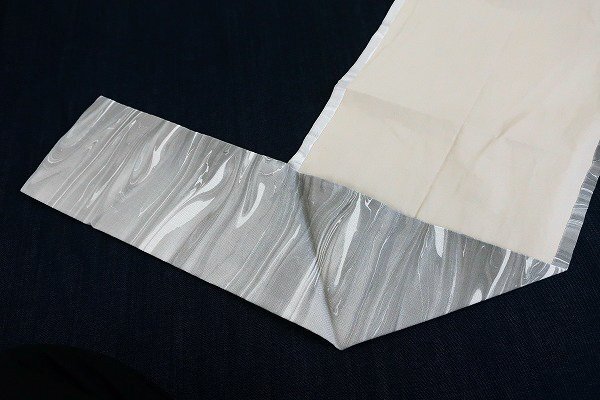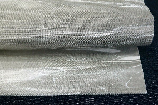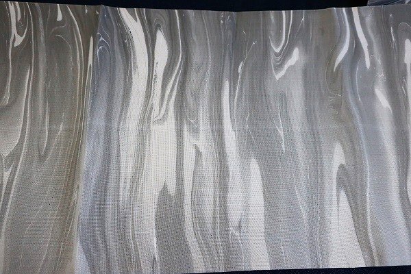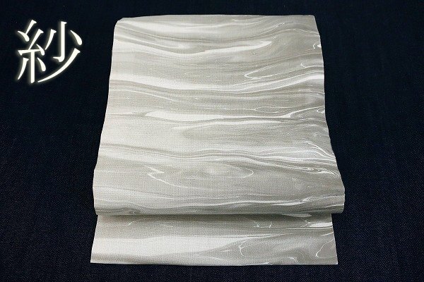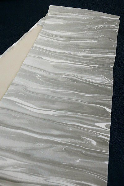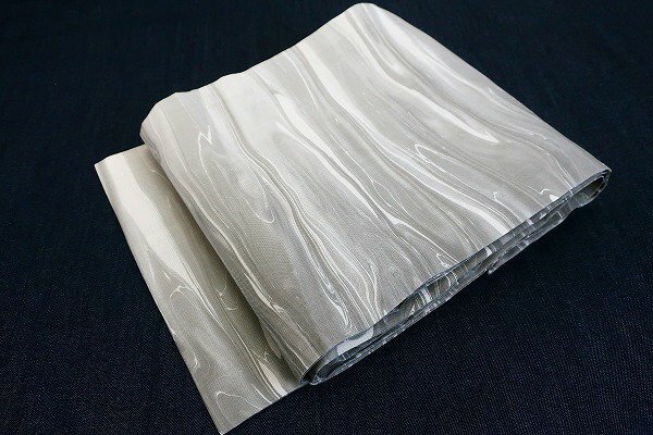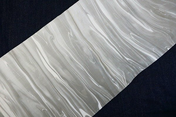【送料無料】美品 名古屋帯 夏帯 夏 紗 墨流し オフホワイト 長さ3m73㎝ お洒落 正絹 仕立て上がり 着物フィ m-7950 |