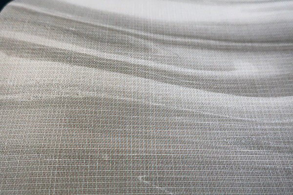 オフホワイトの地に墨流しが施された紗の名古屋帯です。 モノトーンのお色味が大変お洒落な一本です。 夏のお出かけにいかがでしょうか。 ※松葉仕立てです。 担当:伊藤 |