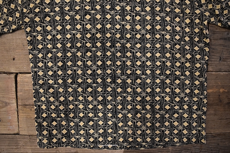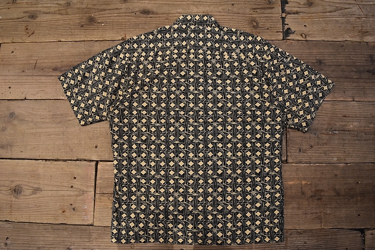 グッドカラーアイテム◎90sビンテージpierre cardinピエールカルダン半袖コットン総柄シャツMブラック黒ベース100綿アメカジt809