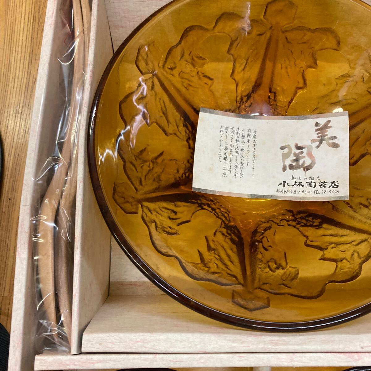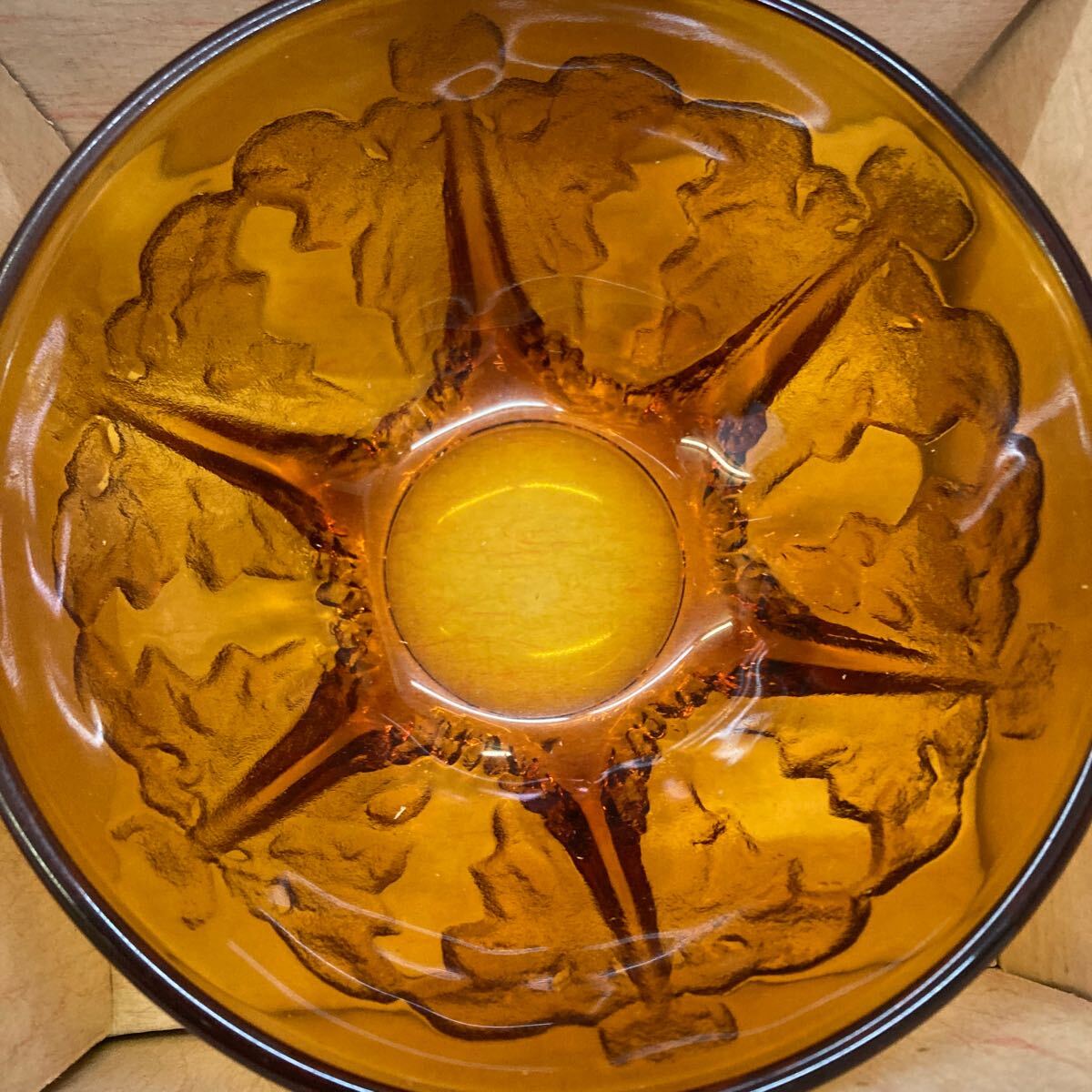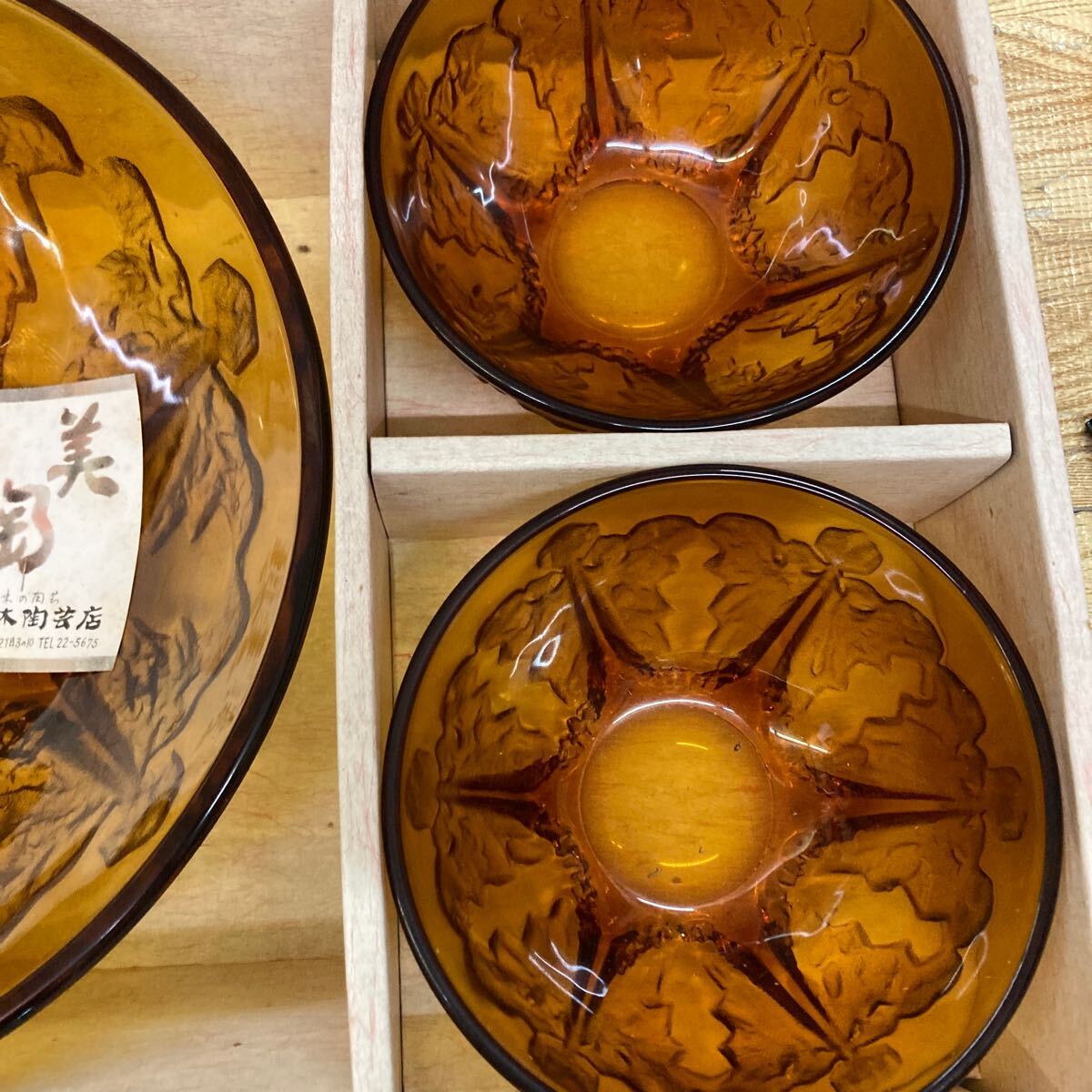 B7-67 【長期保管品】昭和レトロ アンバーガラス 大鉢 小鉢 ヘルバー付 ボウル
