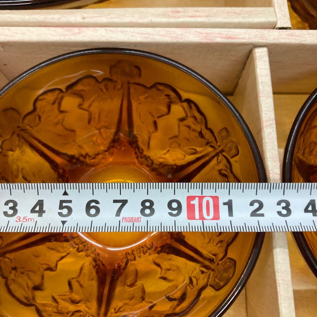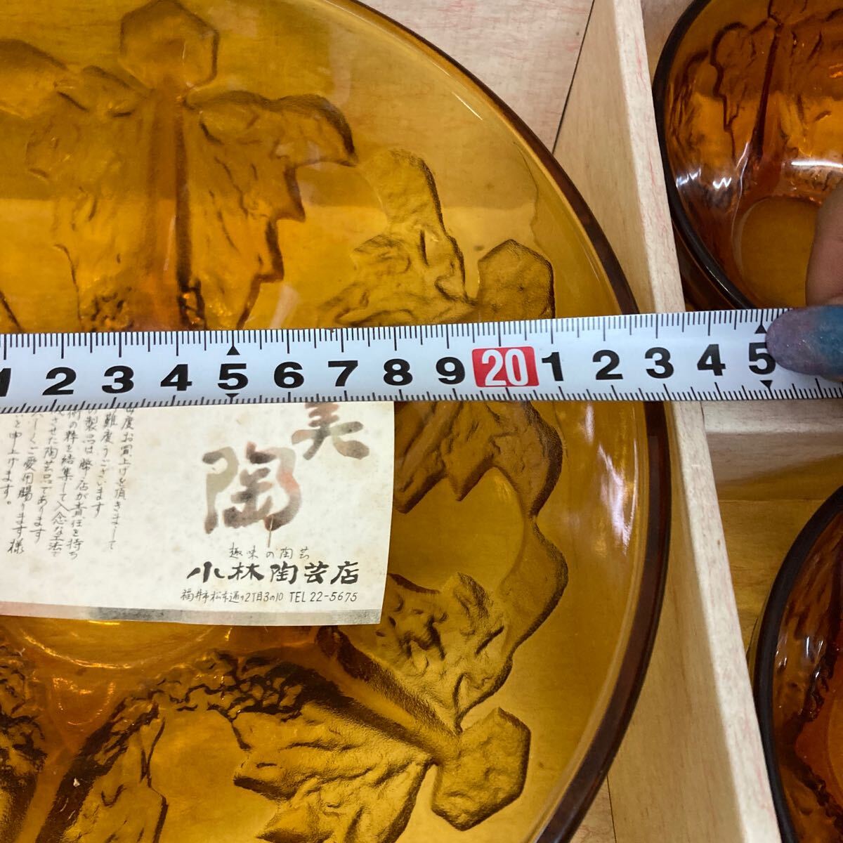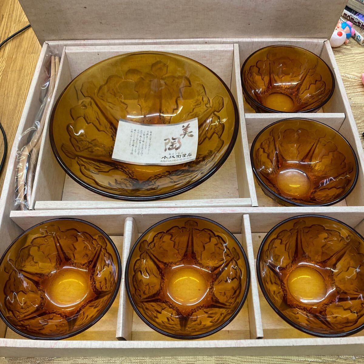 B7-67 【長期保管品】昭和レトロ アンバーガラス 大鉢 小鉢 ヘルバー付 ボウル