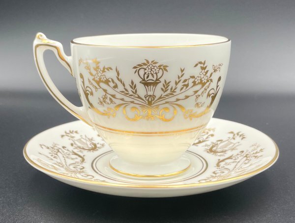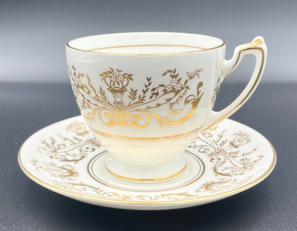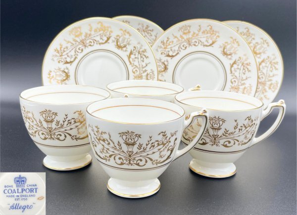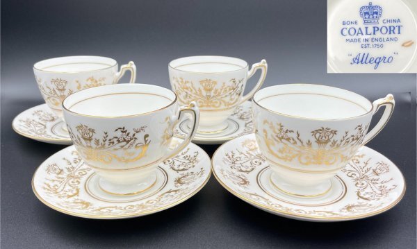 英国の名窯コールポートが1950年代〜1960年代にかけて製造した、豪華な金彩が美しい「Allegro」シリーズのカップ&ソーサー4客セットです。