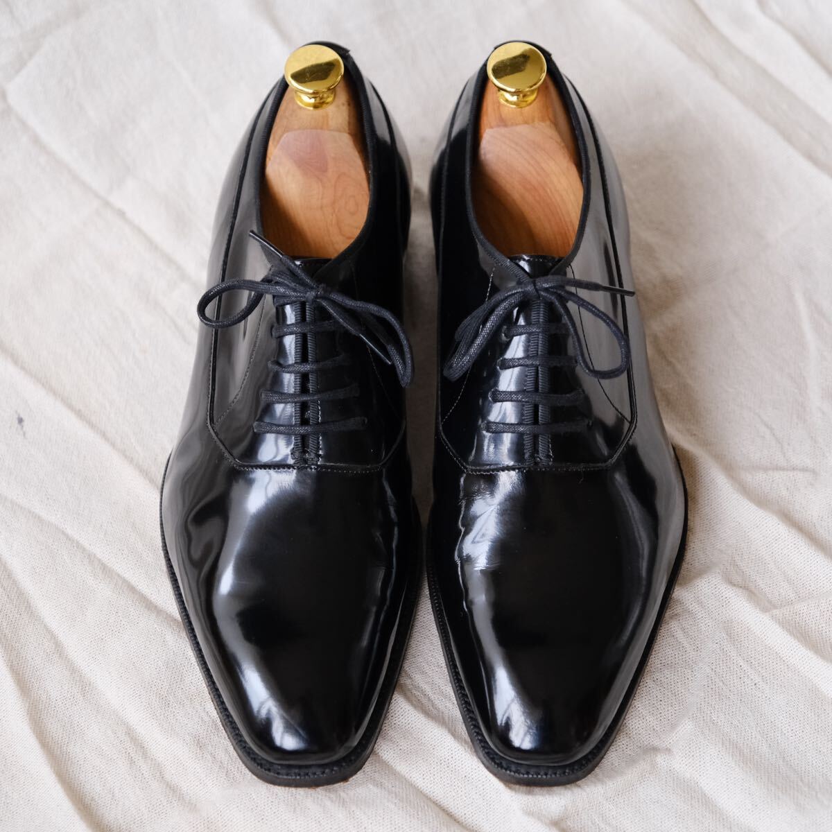 アッパーにはマットで美しい艶のあるパテントを使用。