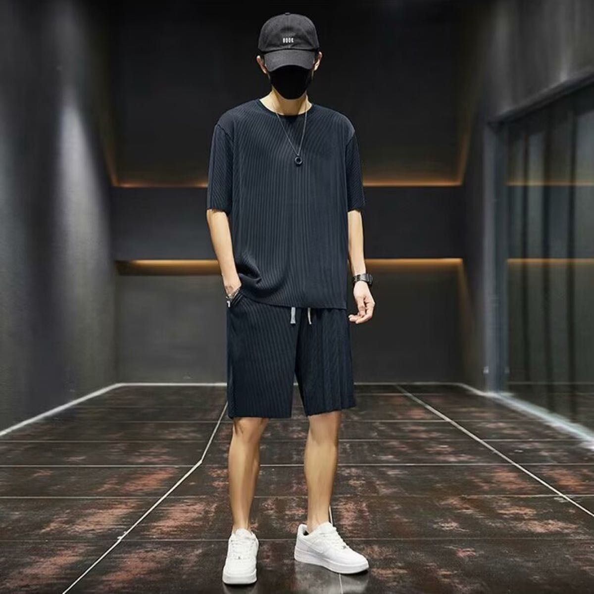セットアップ メンズ ルームウェア カジュアル アウトドア 速乾性 吸湿性 吸水性 ストレッチ 快適 シームレス 締め付けなし さわやか 夏 おススメ ブラック グレー ネイビー 半パン 半袖