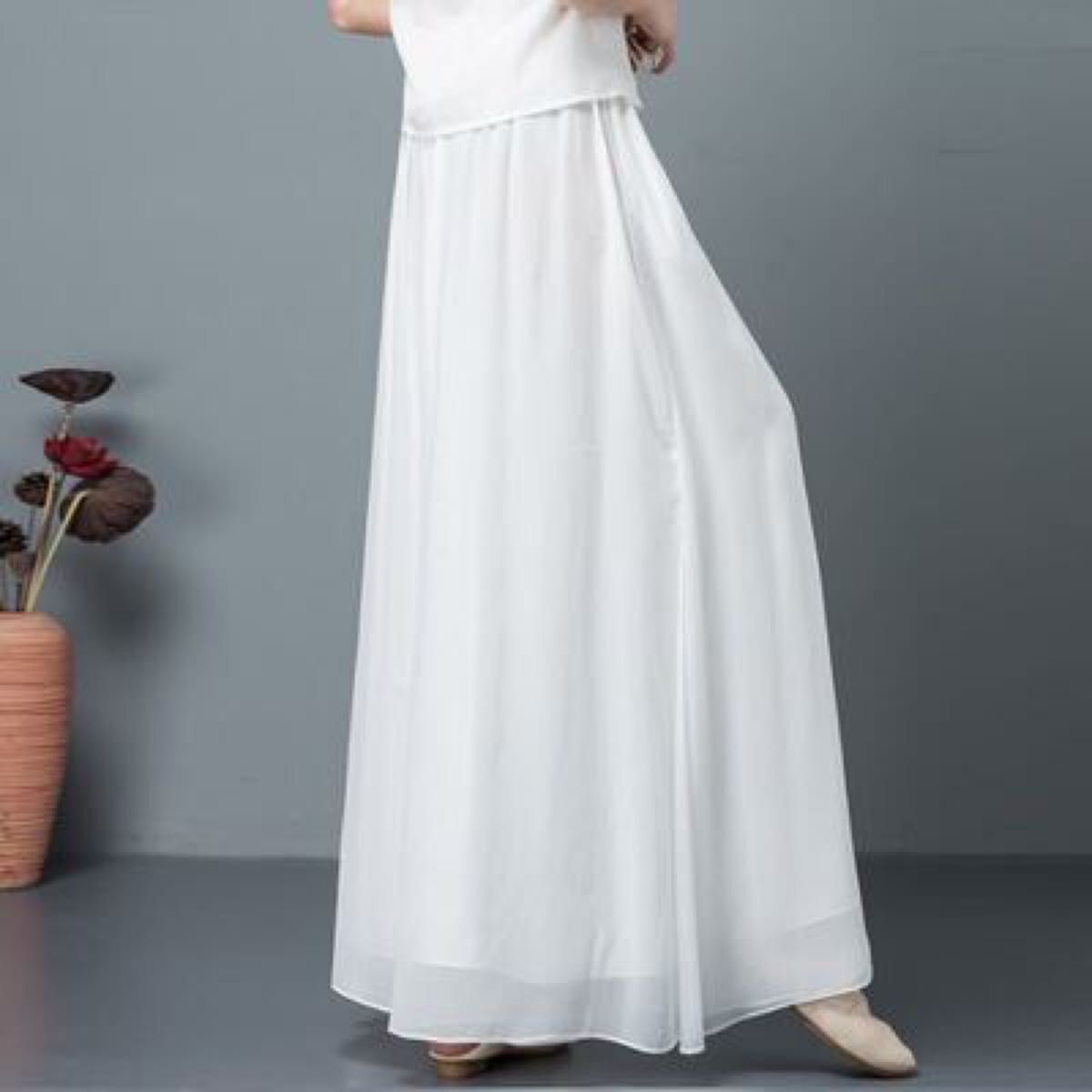 レディース リネンスカート リネンパンツ 綿麻 ボトムス ガウチョパンツ ワイドパンツ スカート シンプル フレアスカート 無地 麻 リネン パンツ 細見え ウエストゴム おしゃれ 体型カラー 夏 通気性抜群 ブラック ホワイト