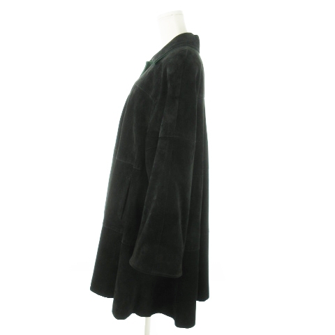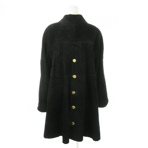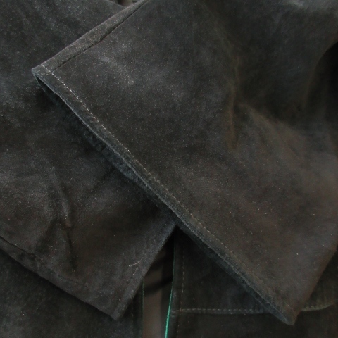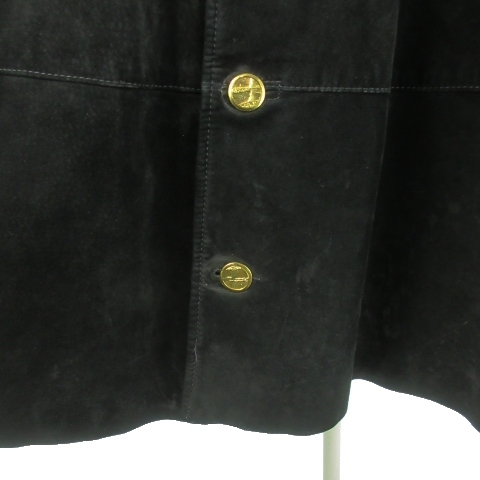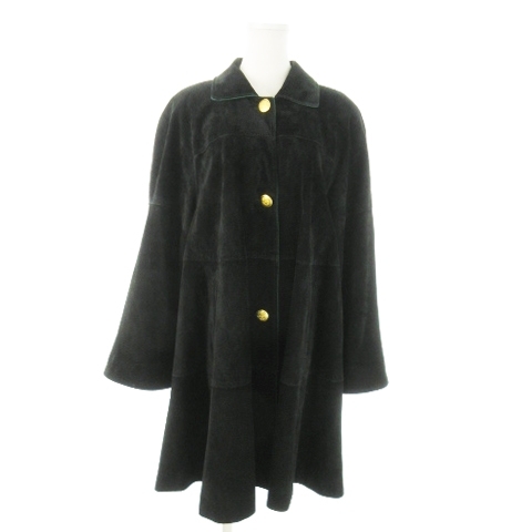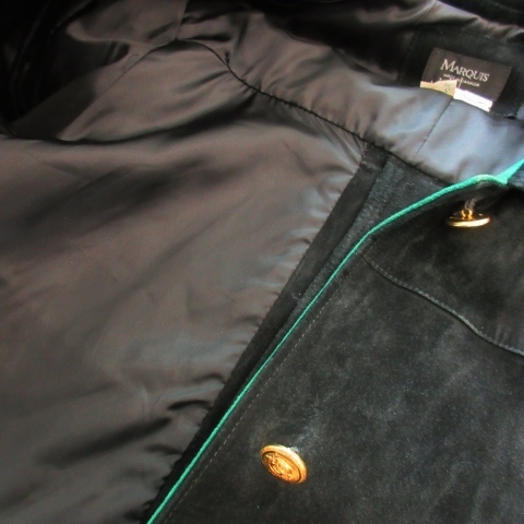 マーキス MARQUIS レザーコート スエード ステンカラー ミドル丈 ライン 金ボタン バックボタン 12 L 黒 ブラック /AO15 ■GY18