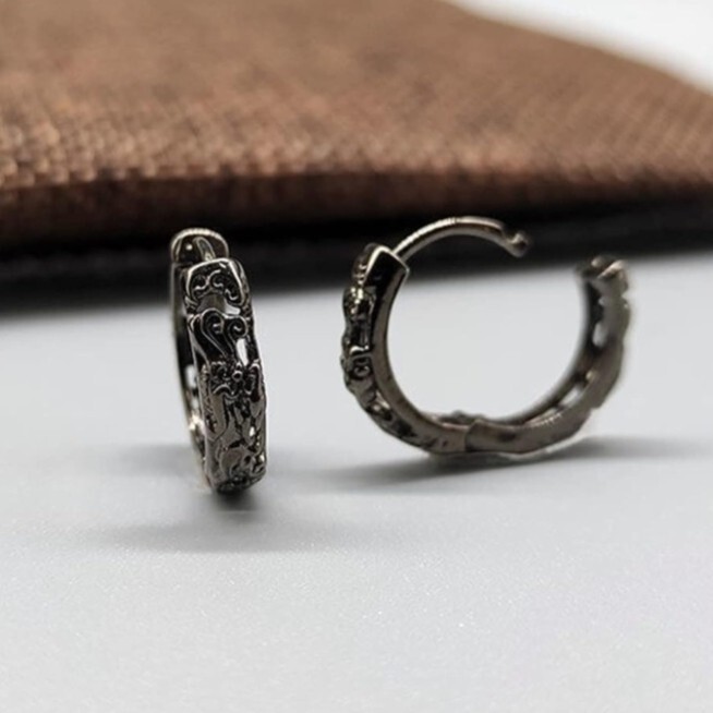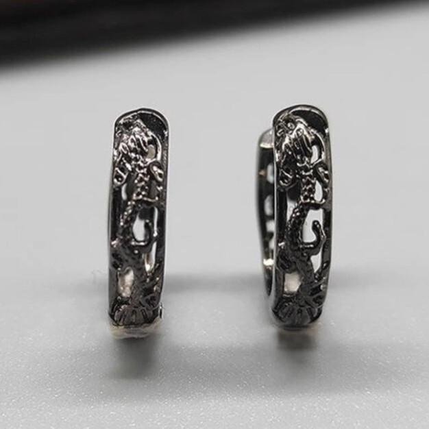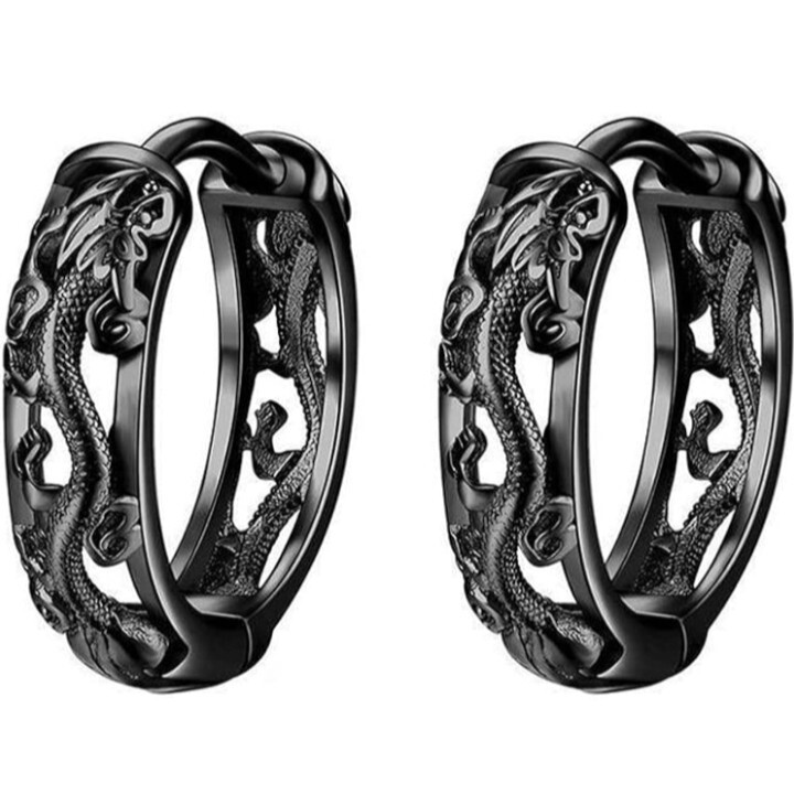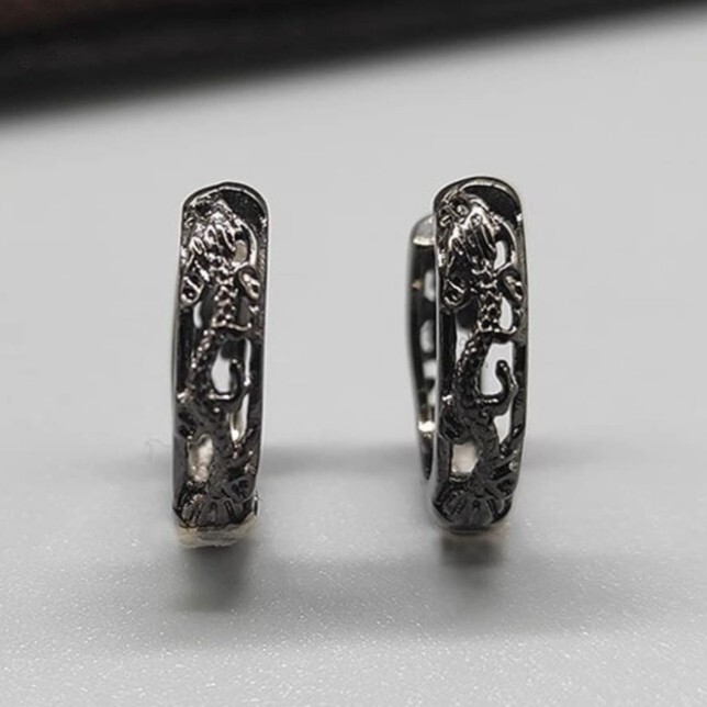 【優れたドラゴンデザイン】 シンプルで着用しやすいデザイン、派手過ぎず、地味過ぎない、ちょうど良い存在感が魅力のフープピアスです。普段使いでもフォーマルでも大活躍する、人気の龍ピアスです。