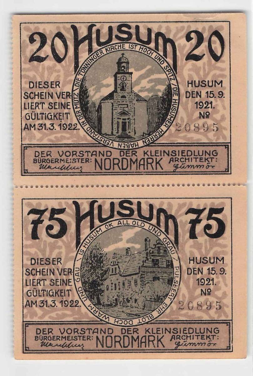 *[令]ドイツ フーズム ノートゲルト(1920s)第一次大戦後緊急紙幣[A1129]7n1