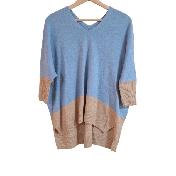 イエナ IENA 半袖セーター/ニット - ライトブルー×ライトブラウン レディース Vネック トップス