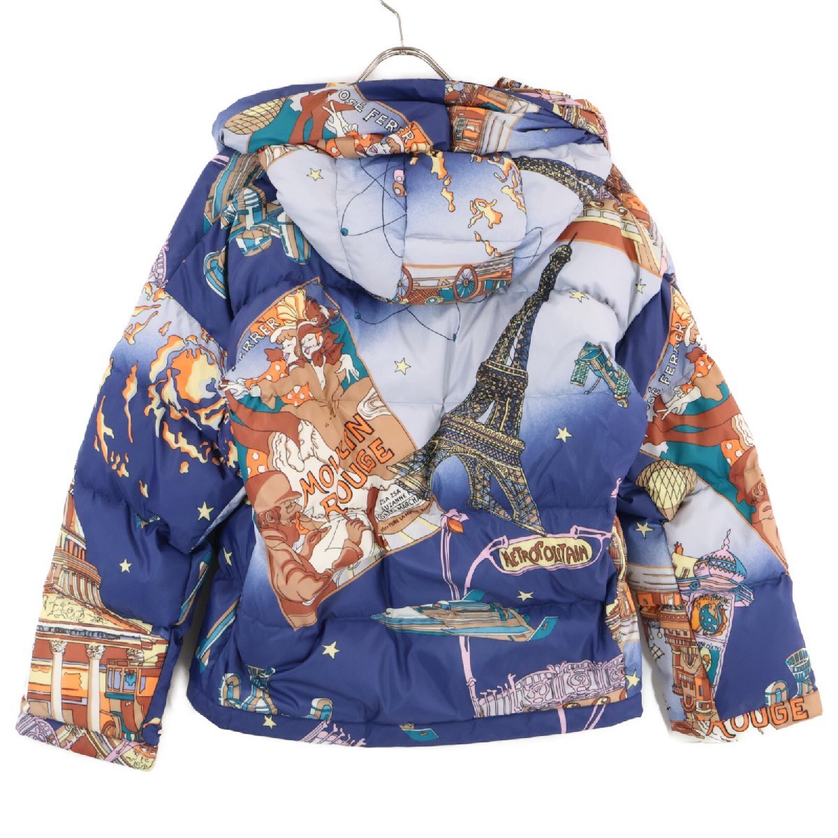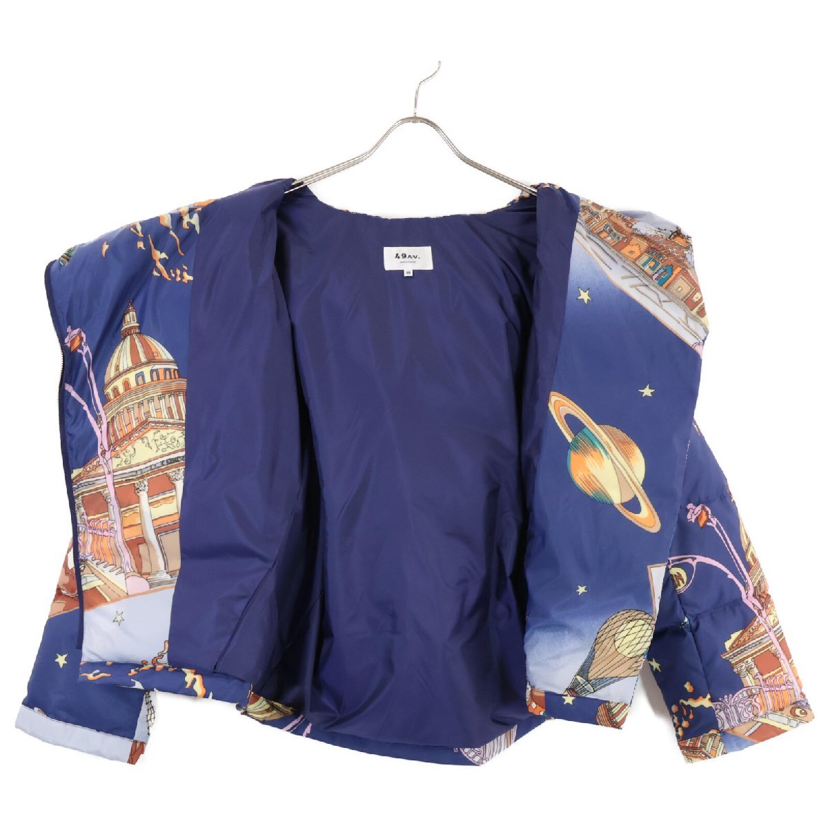 商品名 49アベニュージュンコシマダ 313434124 ブルー パリナイト総柄 アシンメトリージップショートダウンジャケットジャケット