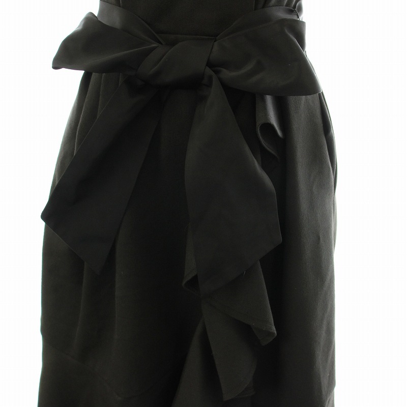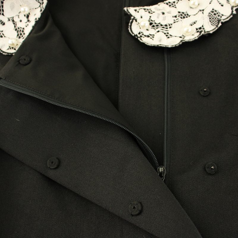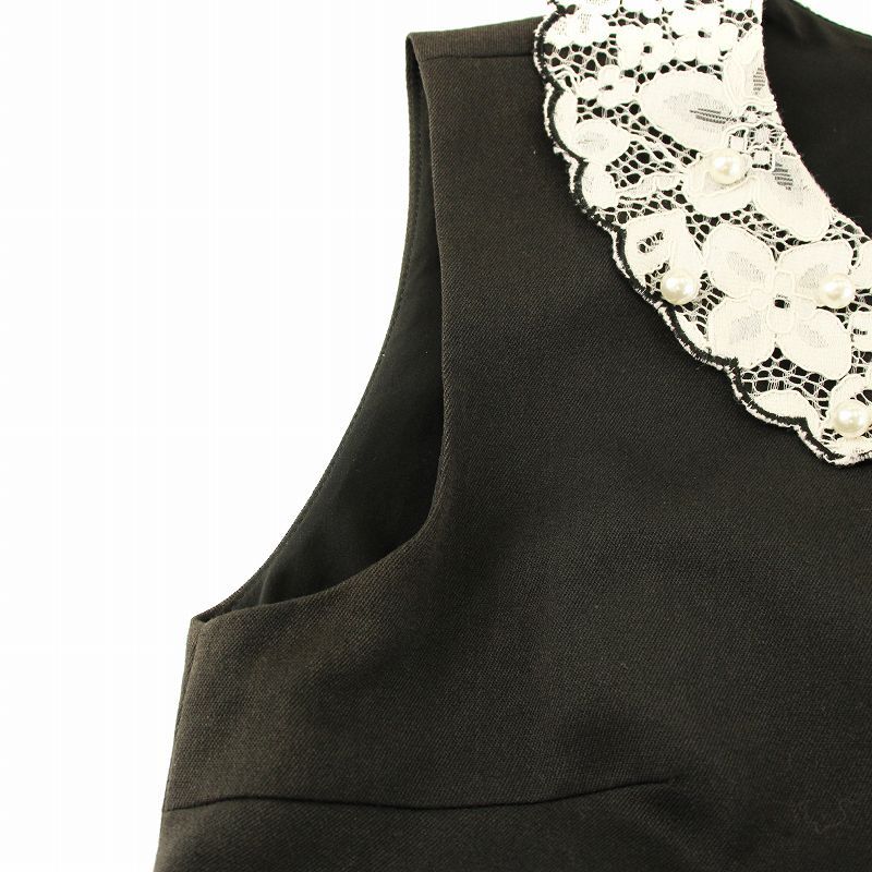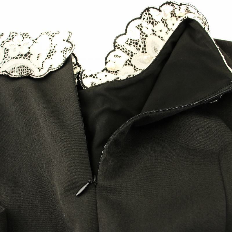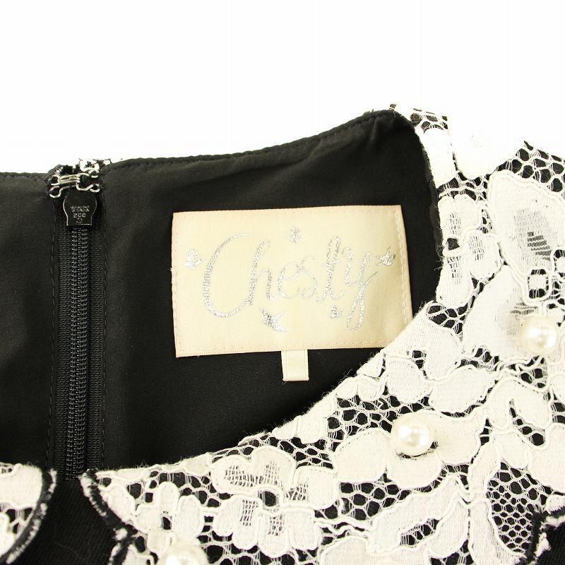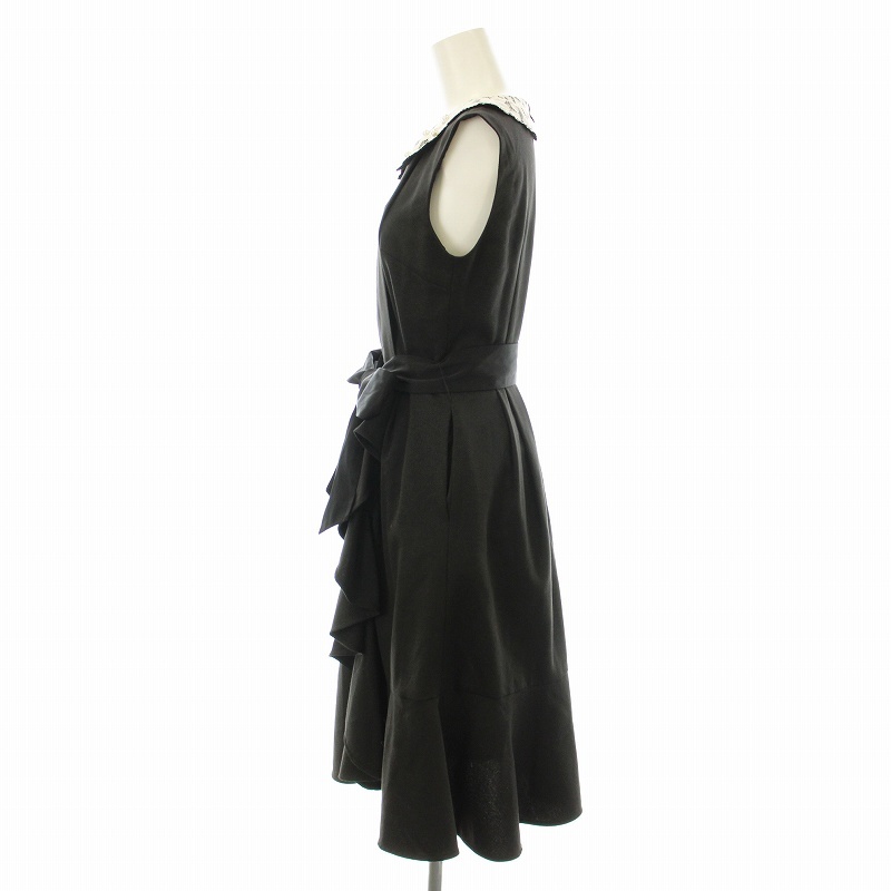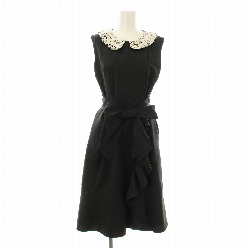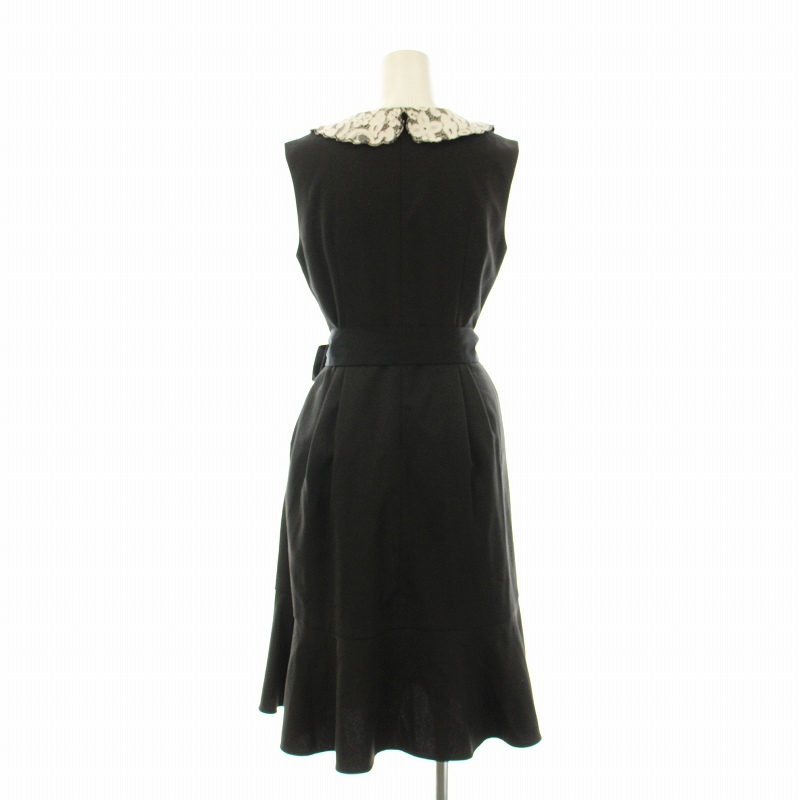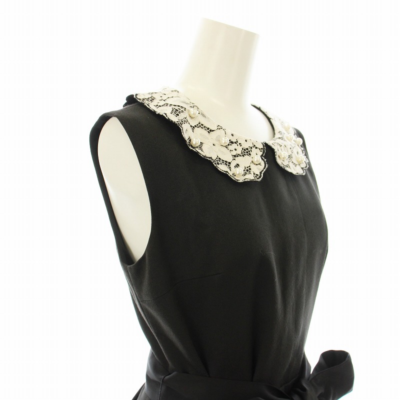 チェスティ ワンピース フレア ひざ丈 ノースリーブ レースカラー フェイクパール装飾 フリル ベルト付き 0 黒 白 12W515