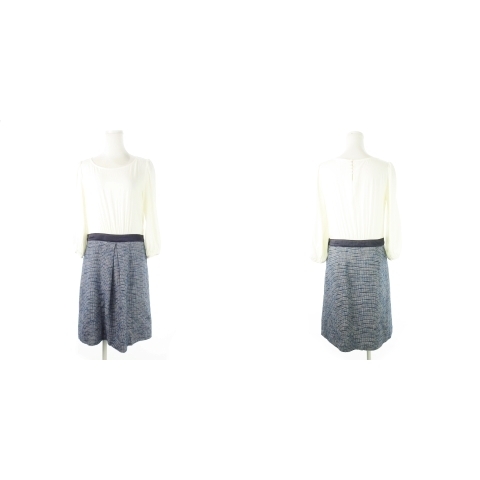グリーンレーベルリラクシング ユナイテッドアローズ green label relaxing セットアップ ツイード ワンピース ジャケット 38 青