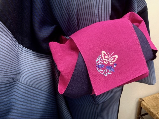 裏地は本麻の色で無地使いで結んでいただきますと、大人っぽくアレンジできます。