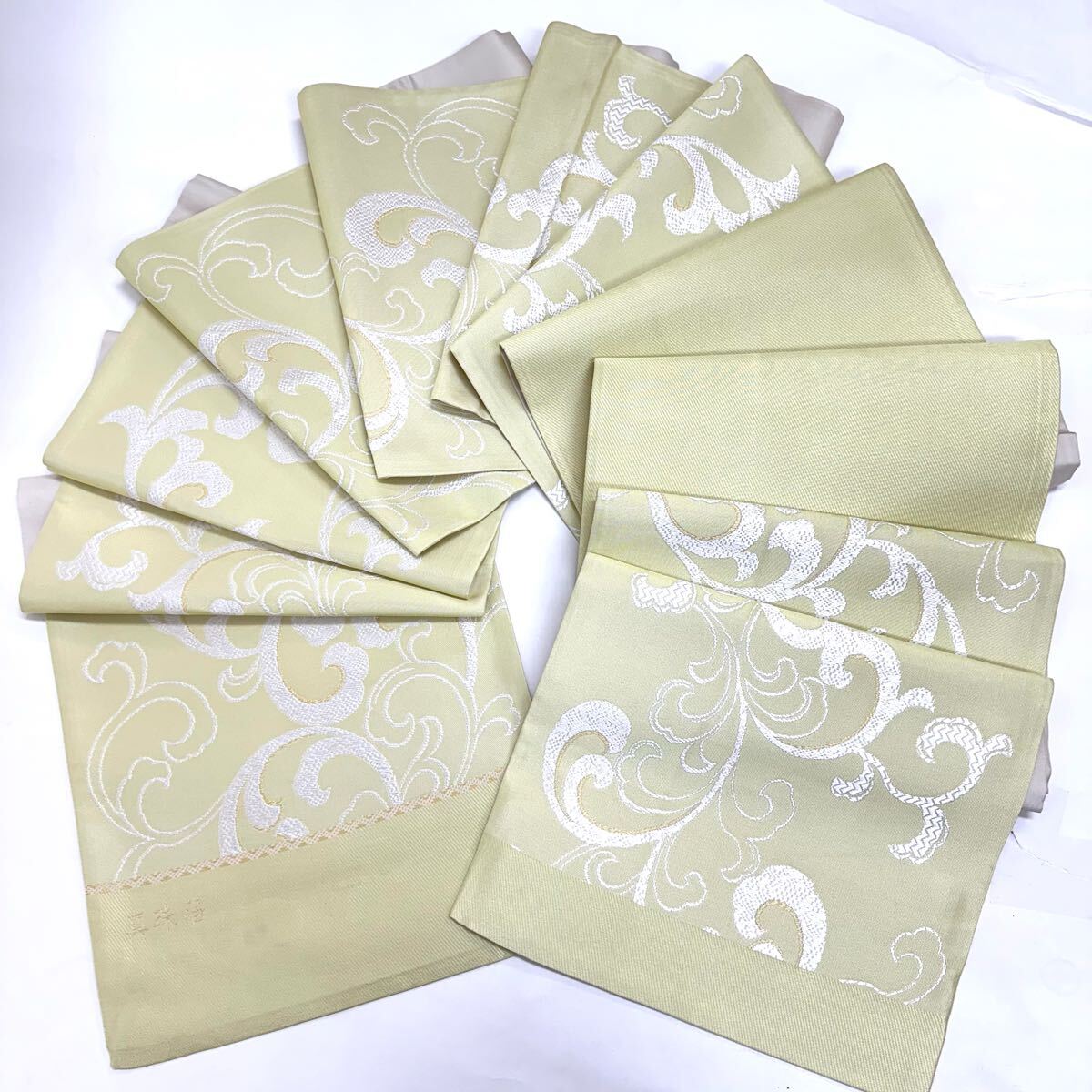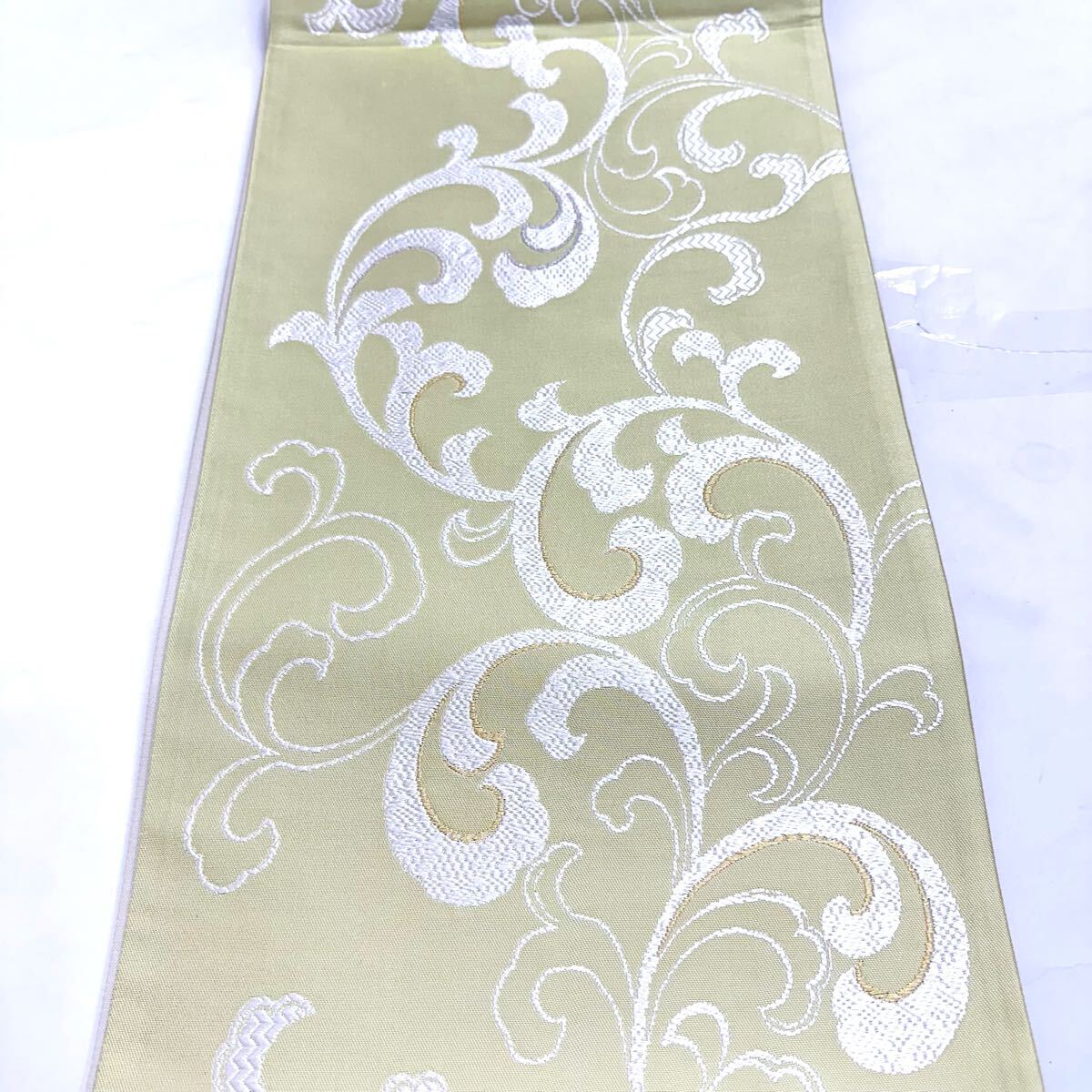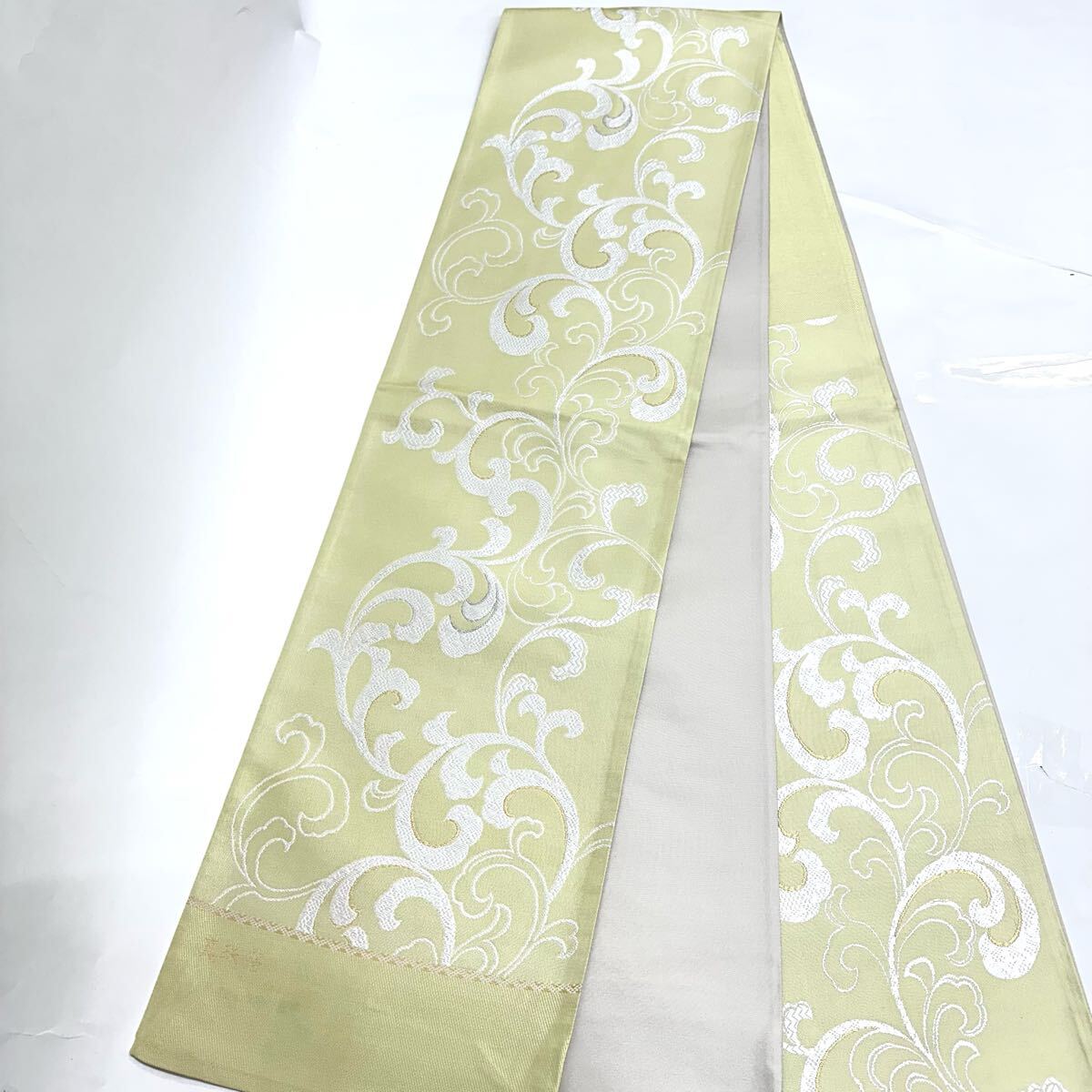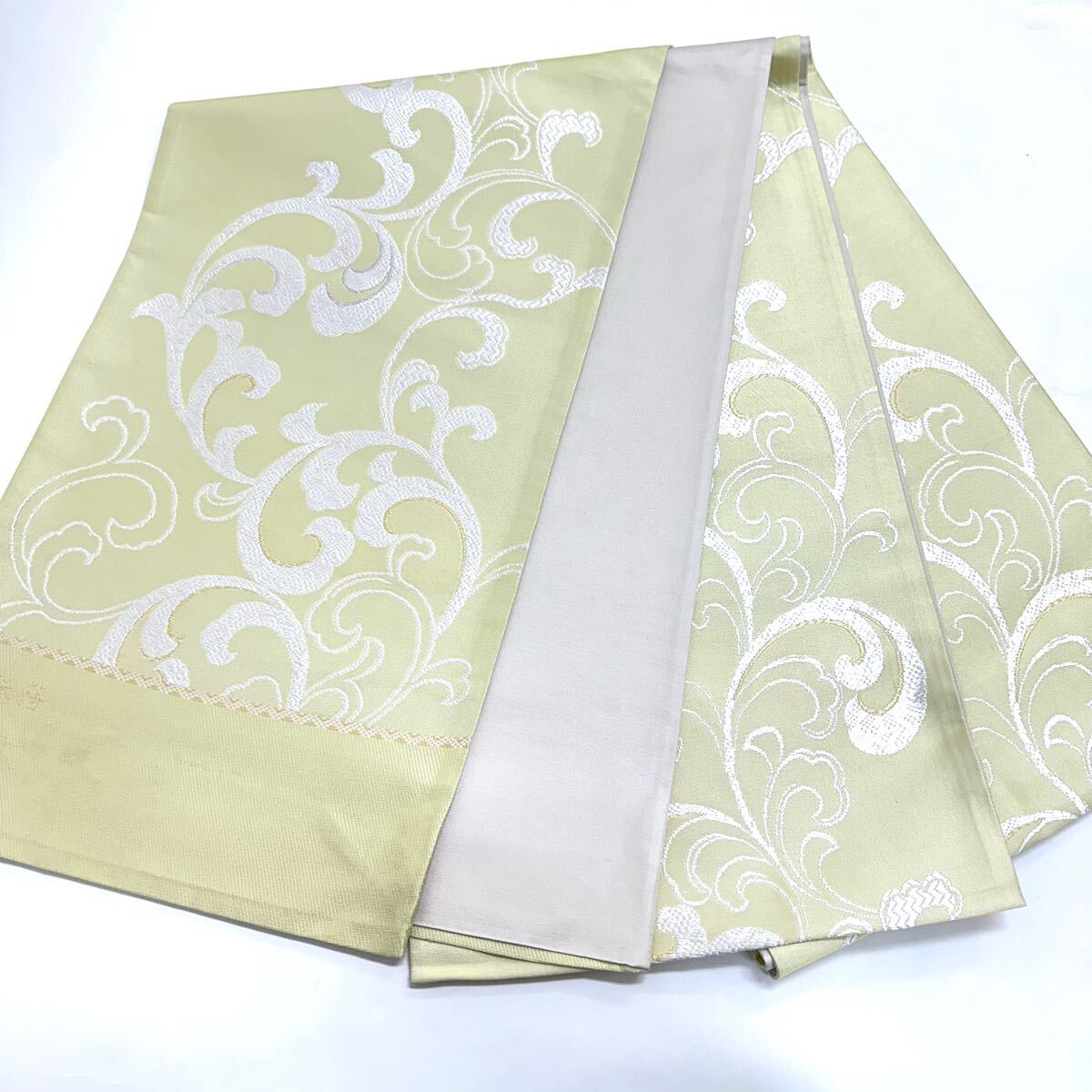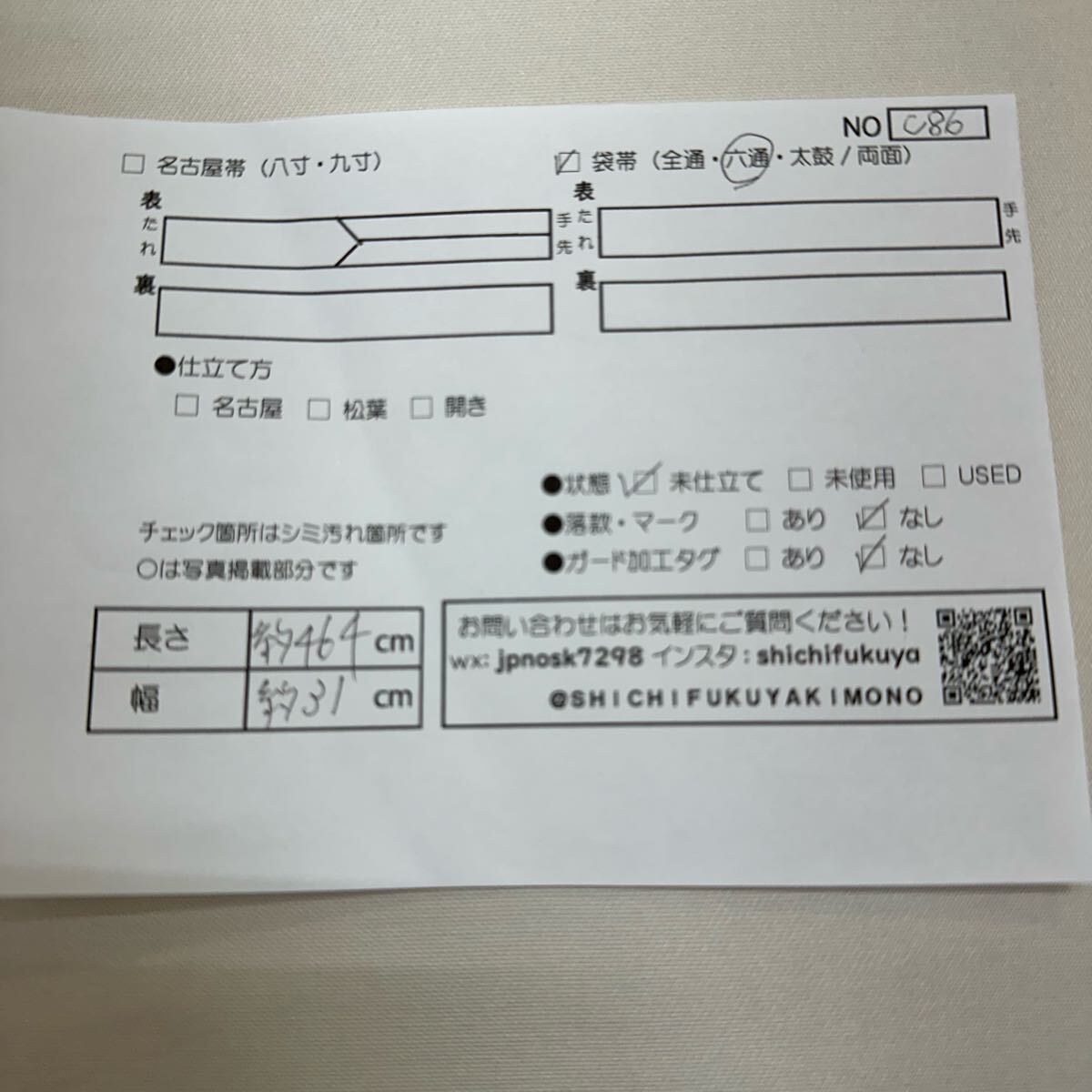 【七福】c86 逸品 高級品 正絹 袋帯 六通 真珠箔 唐草 金糸 銀糸 刺繍 豪華 未仕立て