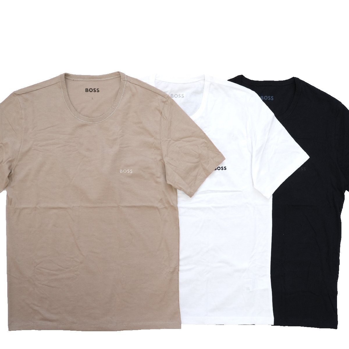 2025◆最新◆ボス◆インナーに最適 ワンポイント BOSS ロゴ 半袖Tシャツ 3枚セット 黒 白 ベージュ M◆HUGO ヒューゴ レギュラーフィット