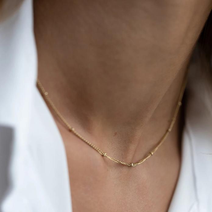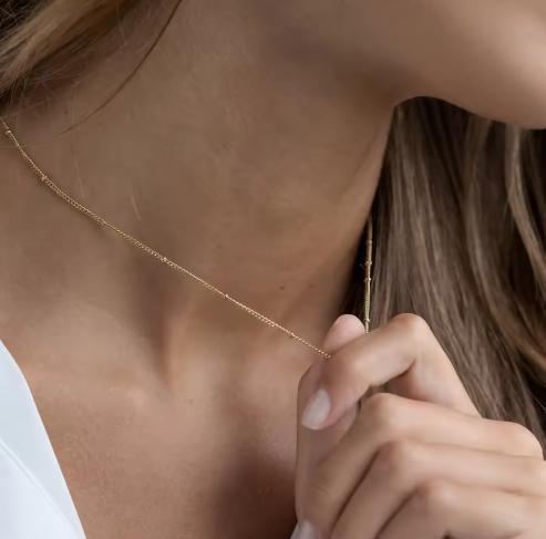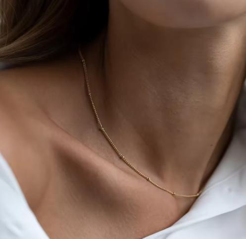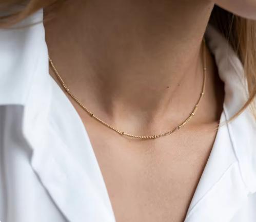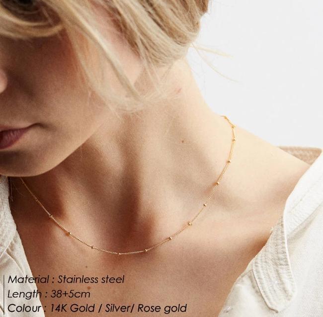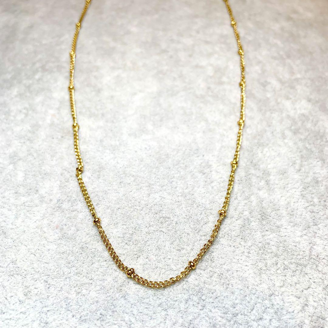 繊細で華奢なチェーンが美しく輝く、ステンレス製ゴールドネックレス。