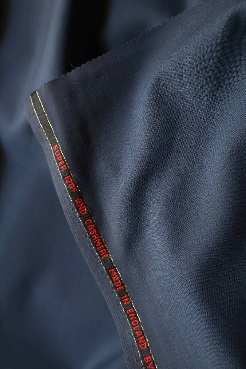 いずれにしても、スキャバルと関係があろうとなかろうと、こちらの生地は英国で織られた、SUPER 120's & CASMEREのウーステッド。トロピカル生地ほどスカスカではなくコシはあり、しかし、とてもソフトな手触り。薄手なので春夏用と思われます。