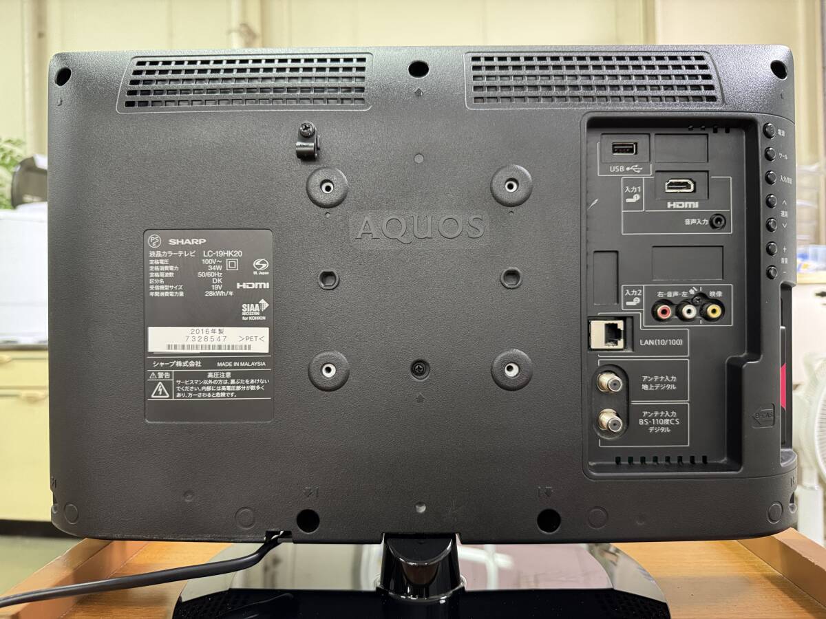 シャープ AQUOS 19型 LED 液晶テレビ 2016年製 LC-19HK20 管理番号F933