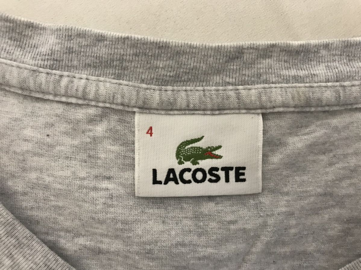 商品名:本物ラコステLACOSTEコットンVネックロゴ半袖TシャツメンズアメカジサーフミリタリービジネススーツグレーM日本製4