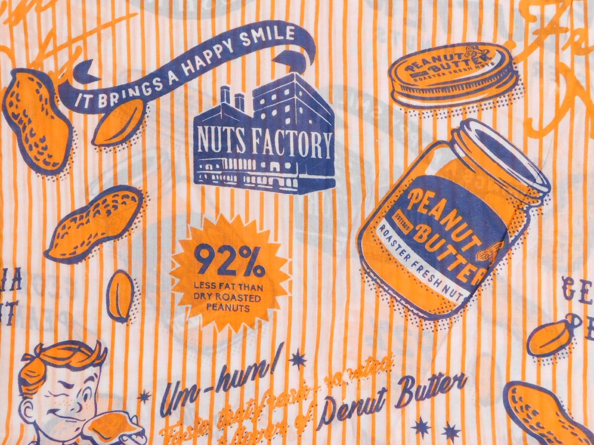 ◆送料\185◆【アメリカンレトロ カーテン・ピーナッツバター】※《KEY STONE・キーストーン》 フード柄 企業パッケージ