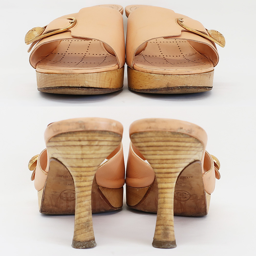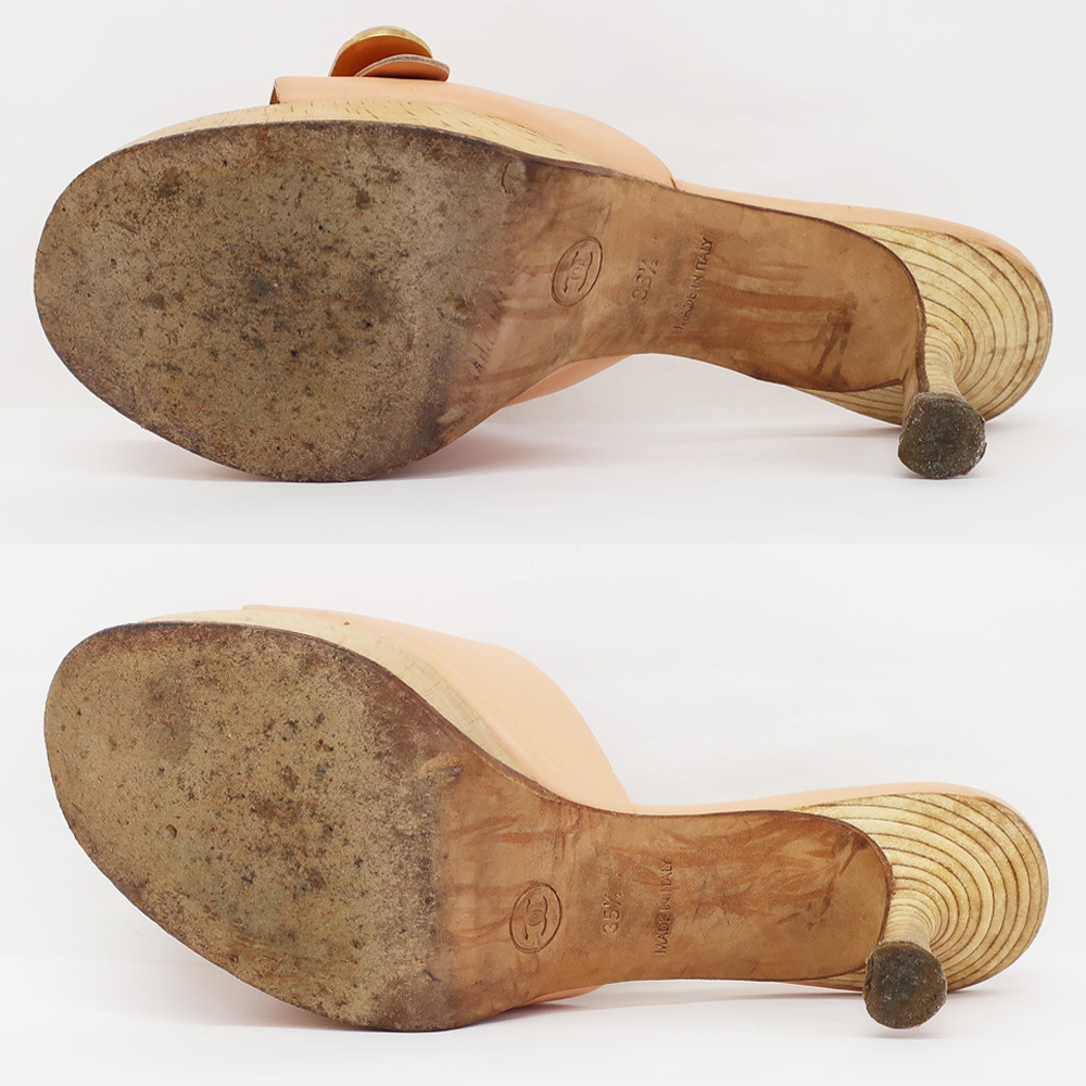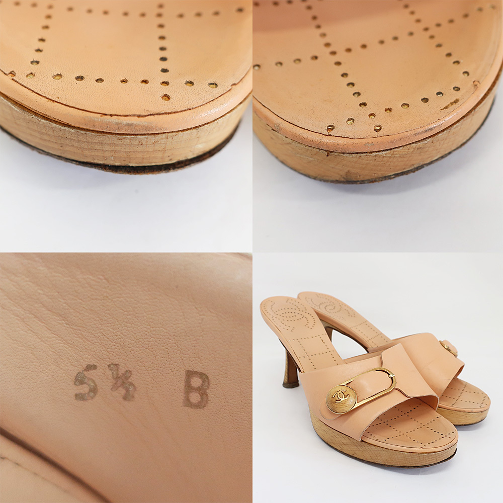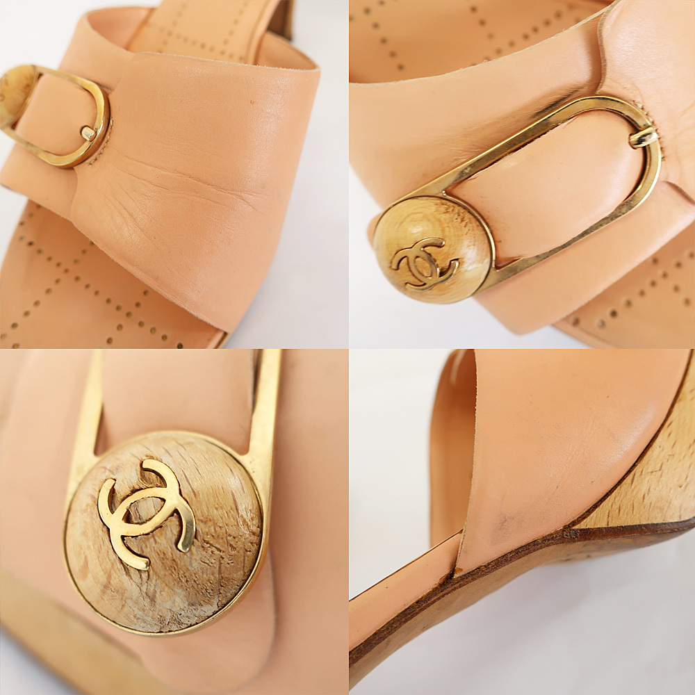 【天白】シャネル サンダル ミュール ウッドボタン ココマーク ピンク ベージュ サイズ35.5 22.5cm相当 靴 レディース