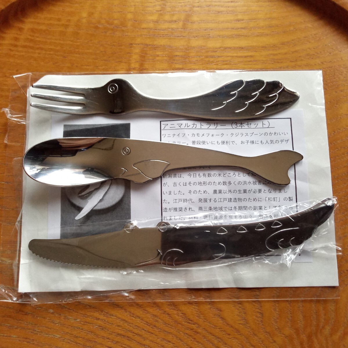 【同梱可】 ステンレス アニマルカトラリー 3本セット クジラスプーン かもめフォーク ワニナイフ 新潟県燕三条製