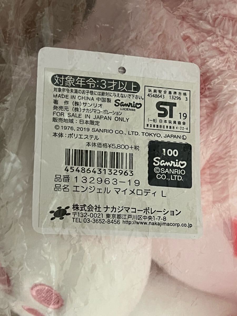 商品名 : サンリオキャラクターズ エンジェル マイメロディ ぬいぐるみ