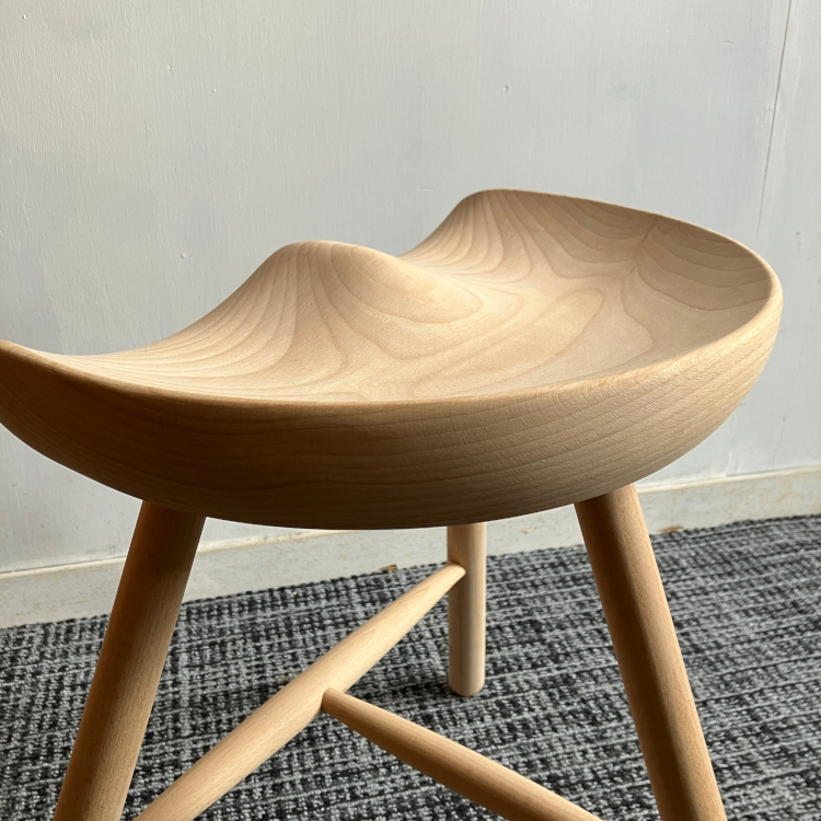 もともと牛の乳しぼり用に何世紀にもわたって使われてきたスツールを、靴職人が座り心地を良くするためにとお尻の形に合わせて削ったことがきっかけとなり、現在の形に近づいたスツール。3本脚のデザインは北欧の伝統的な椅子がルーツです。店頭に展示がございます。ご来店の際はお試し頂けます。