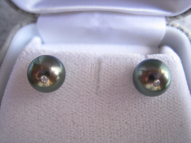 ◇ 石質 天然南洋黒蝶真珠8.8X2粒 天然ダイヤモンド