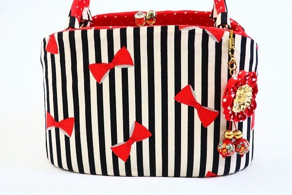 とても可愛い、白黒ストライプにリボン柄の和装バッグです。 浴衣やカジュアル着物に合わせていかがでしょうか。 詳細は画像よりご判断ください。 縦19.5cm 横11.5cm マチ13.0cm |