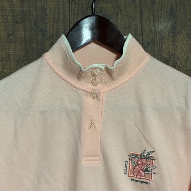 A344◇MUNSINGWEAR | マンシングウェア 長袖ポロシャツ ペールピンク×ホワイト レディース Mサイズ 中古品
