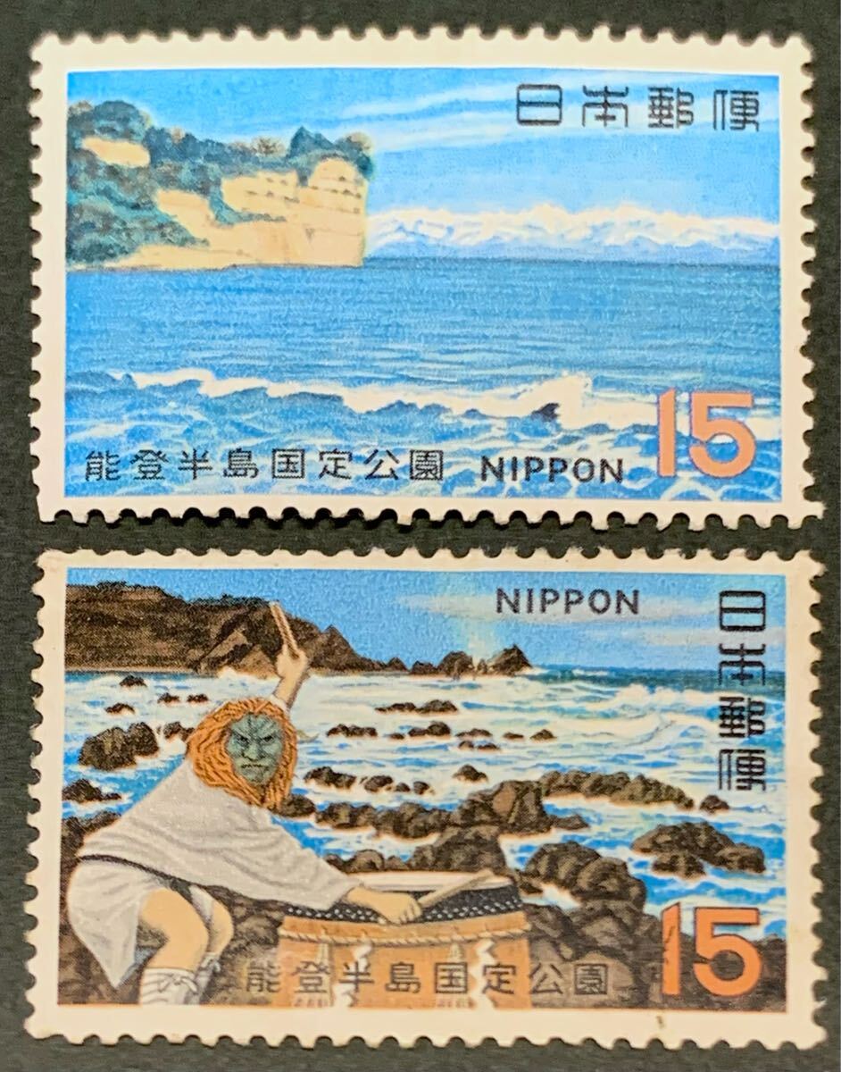 ●【未使用】単片切手 国定公園 能登半島国定公園 1970年 2枚セット 氷見海岸/木の浦と御神事太鼓 匿名配送