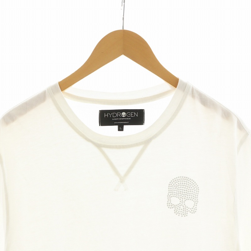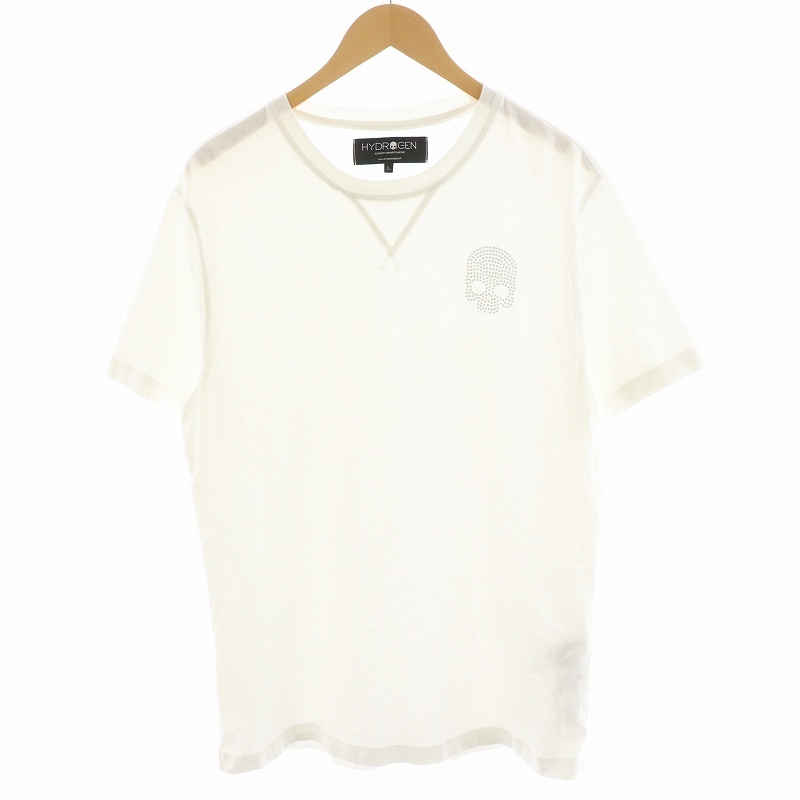 ハイドロゲン HYDROGEN Tシャツ カットソー 半袖 ロゴ ラインストーン L 白 ホワイト /AN24 メンズ
