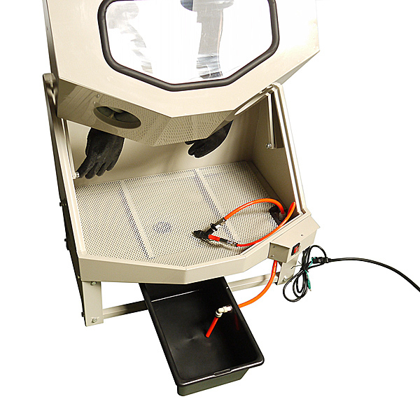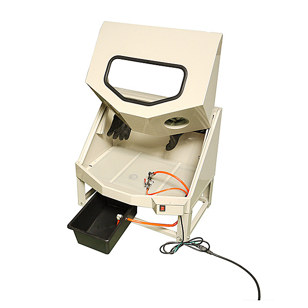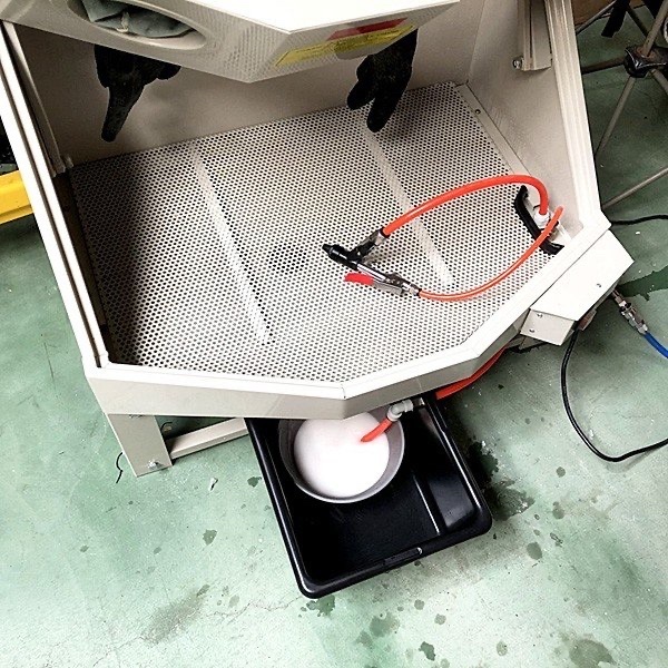 ○ 部品洗浄時の洗浄液、汚れの飛び跳ねや臭気を防ぐキャビネットタイプ |