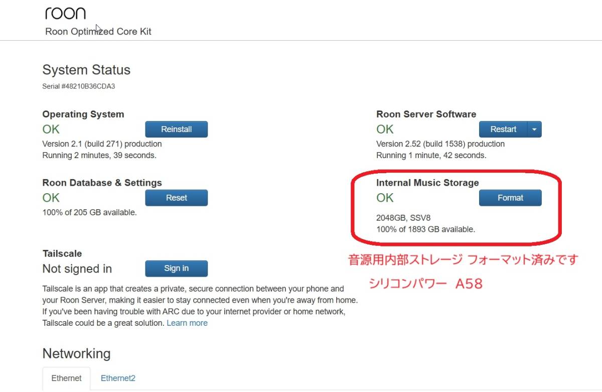 本製品は、Roon専用のOSが予めインストールされておりますので
