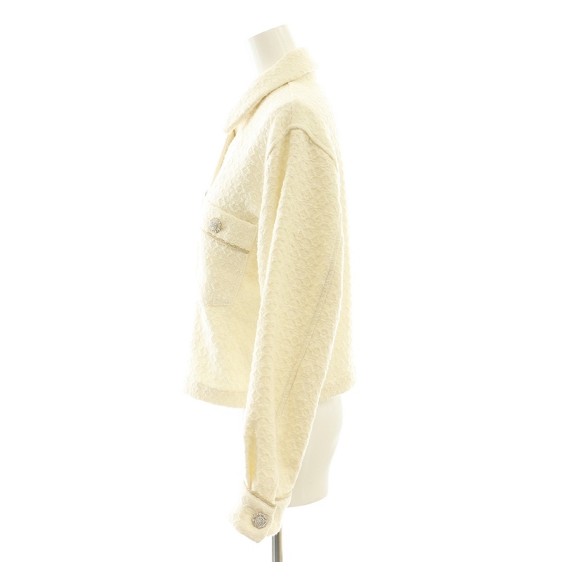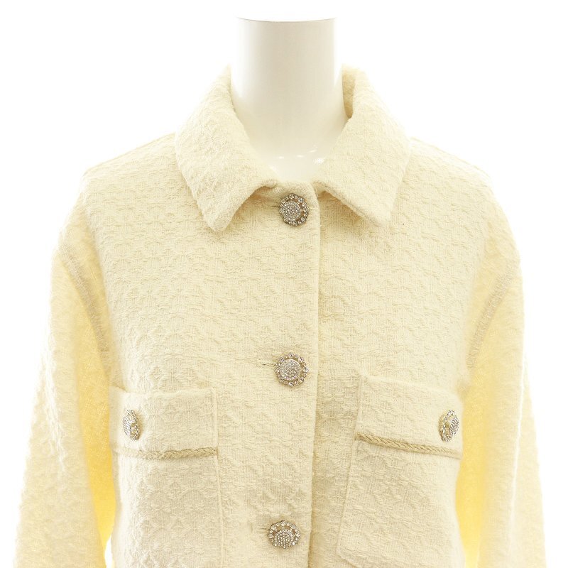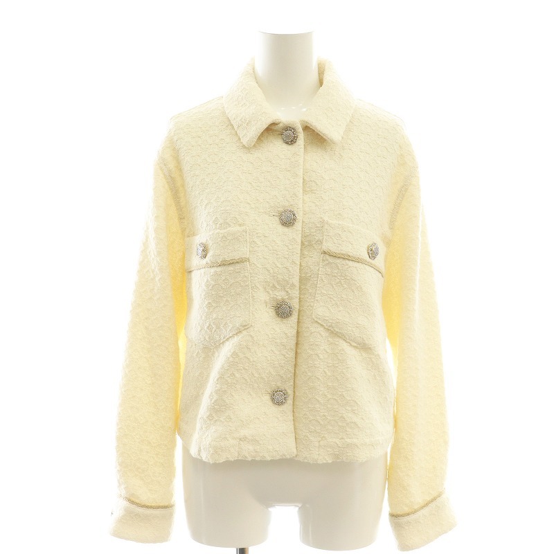 ザラ ZARA ビジュー ツイード ジャケット ステンカラー S 白 ホワイト /AT ■OS レディース