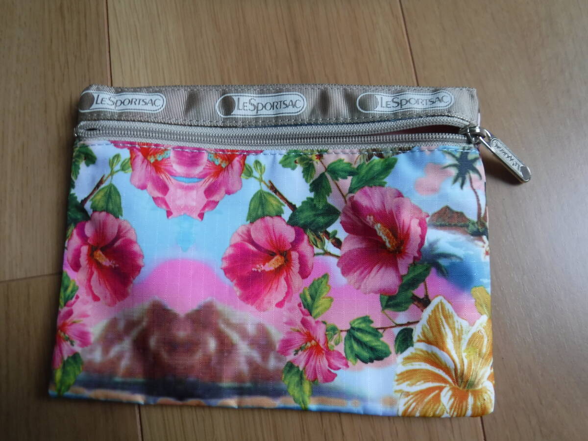 税不要特価 ハワイ柄☆新品!LESPORTSAC レスポートサック ハイビスカス ヤシの木 ハワイアン ポーチ♪①
