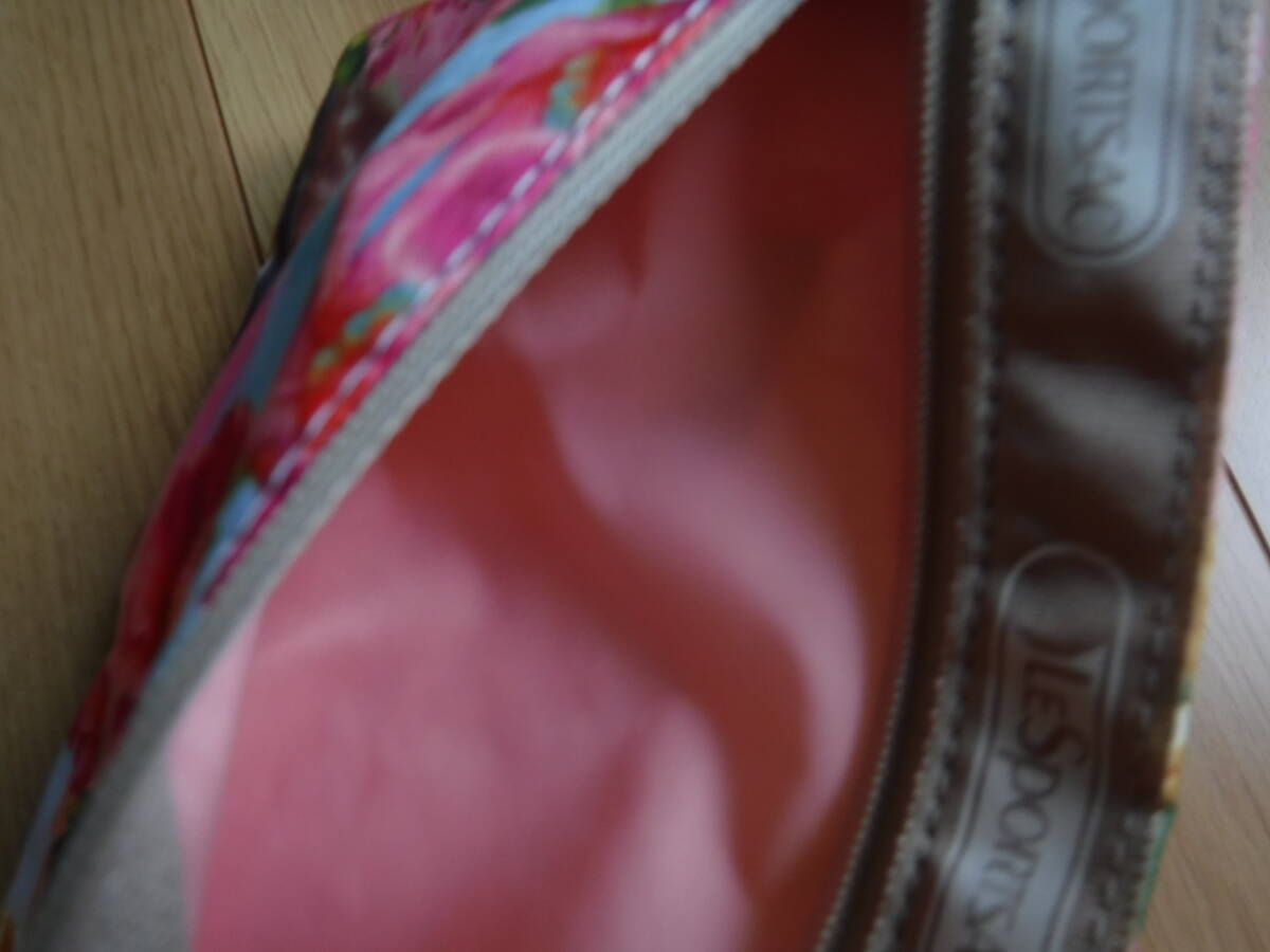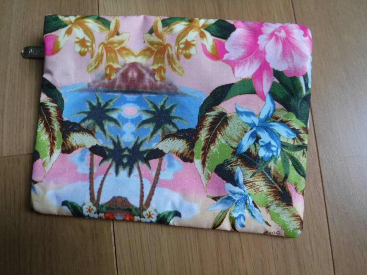 レスポートサックのハイビスカスやヤシの木、ダイアモンドヘッド等ハワイ感たっぷりのポーチで、サイズは個人寸法で横20縦15センチ位、内側もとっても可愛いライトピンクです♪未使用ですが、長期個人保管につき、多少の汚れや擦れ、傷やシワなどある場合がありますので、ご理解ある方、ノークレームノーリターンでお願いします!