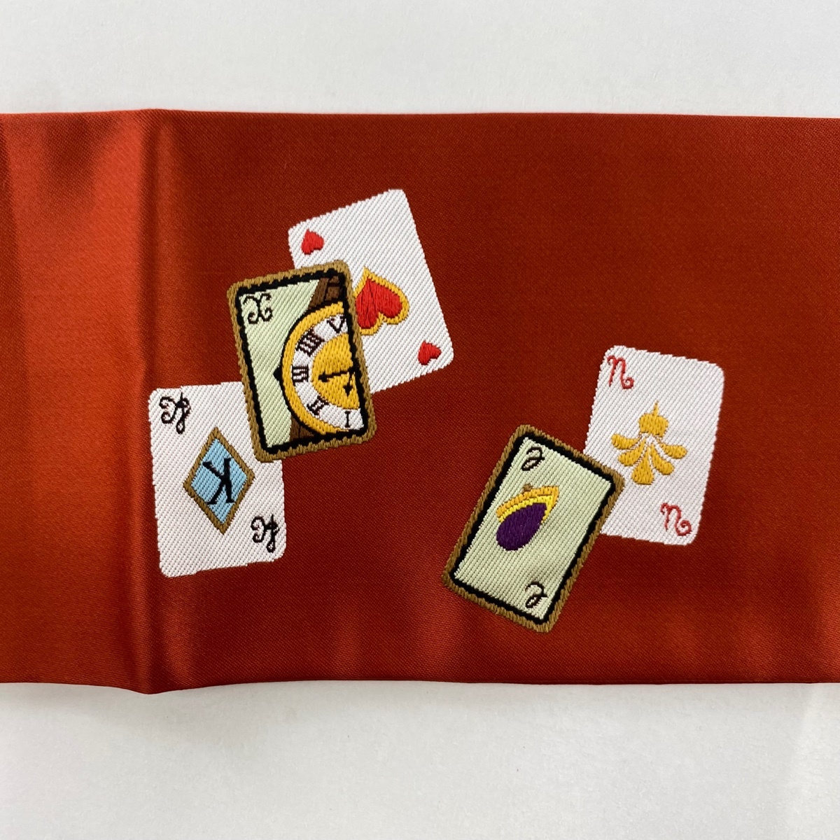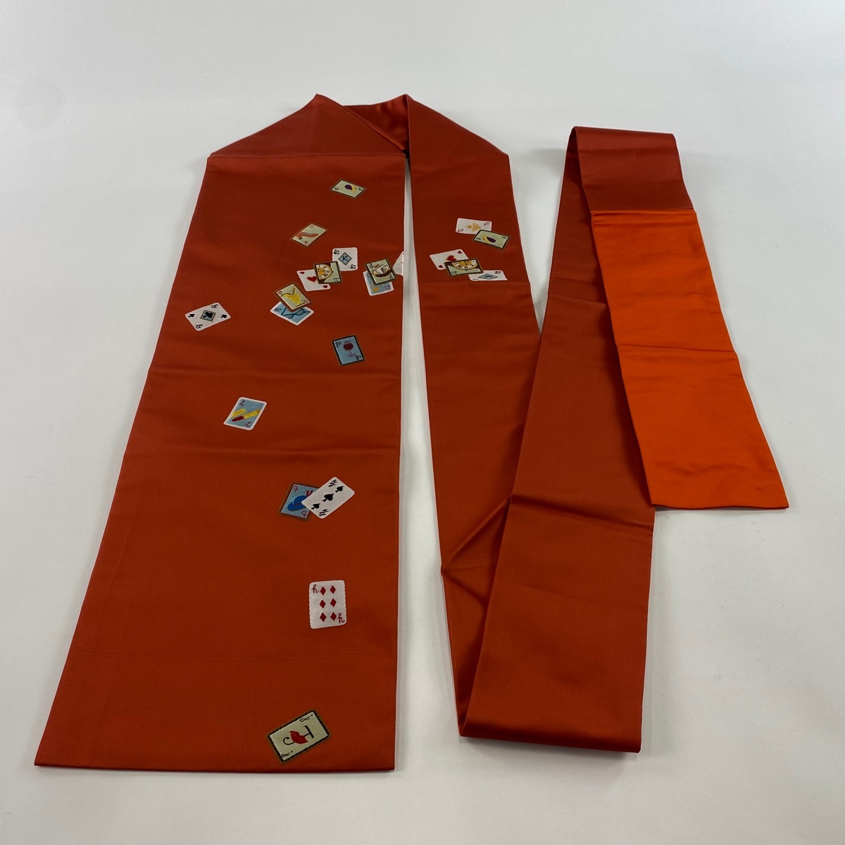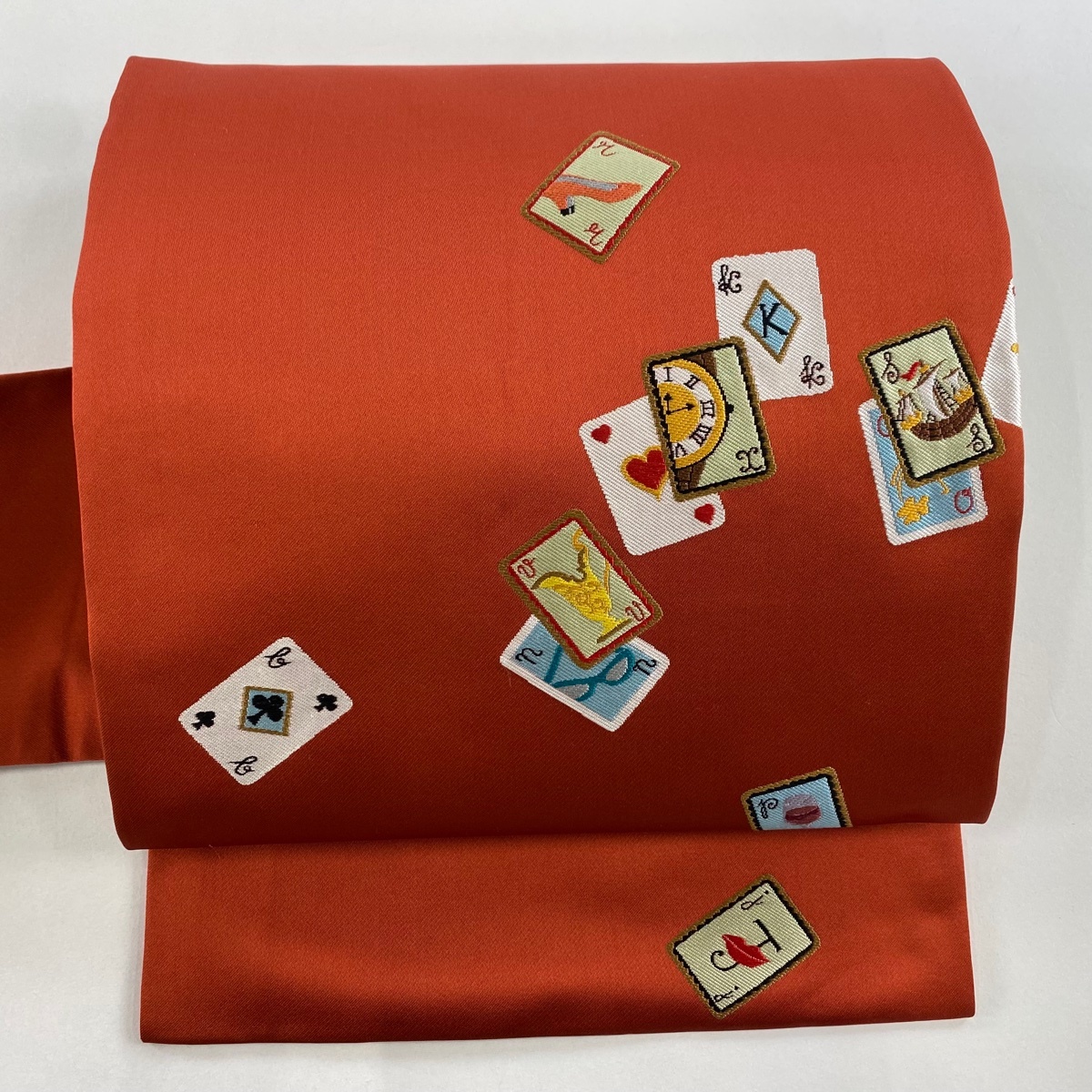 | 名古屋帯 逸品 カードゲーム カードゲーム トランプ 朱色 正絹 【中古】 |