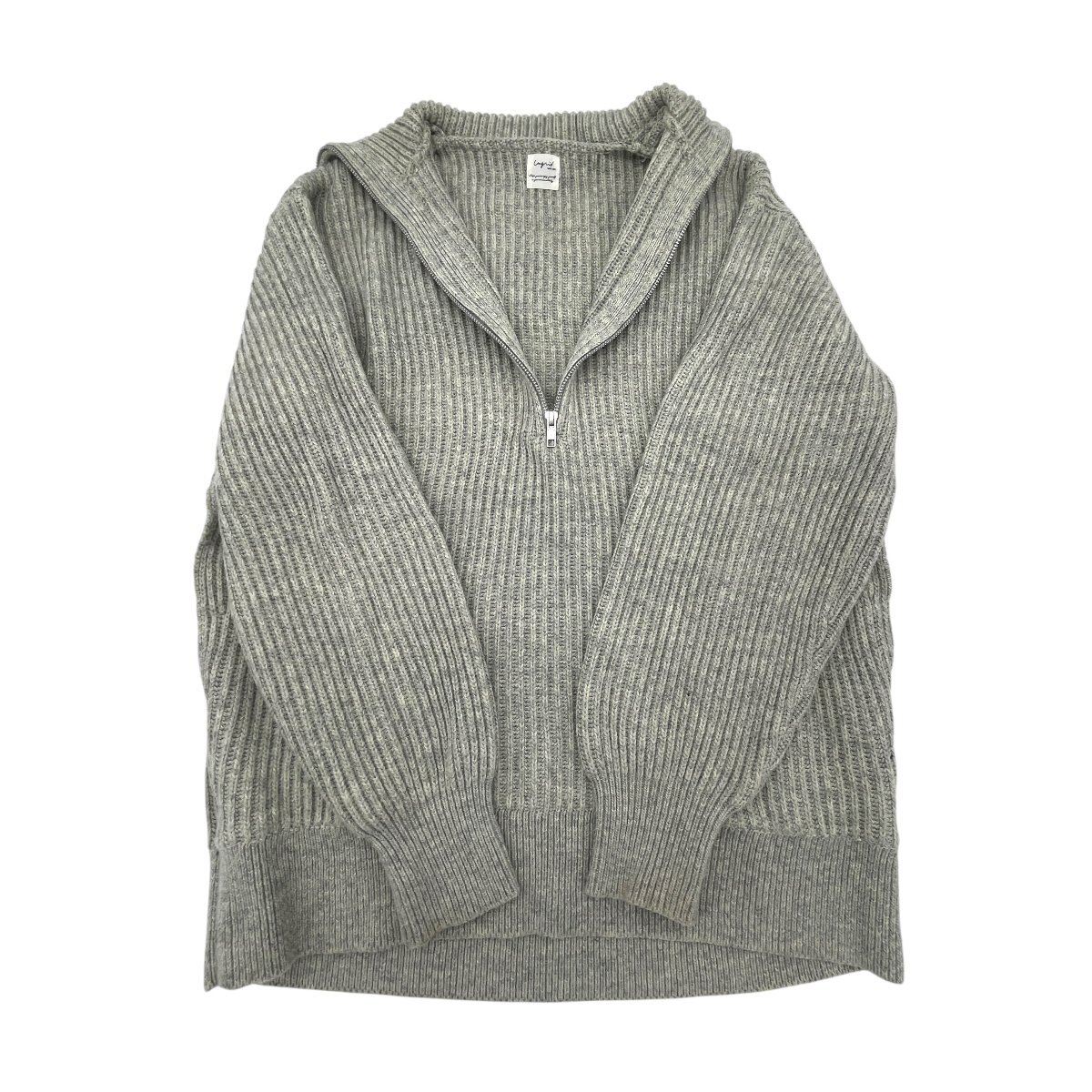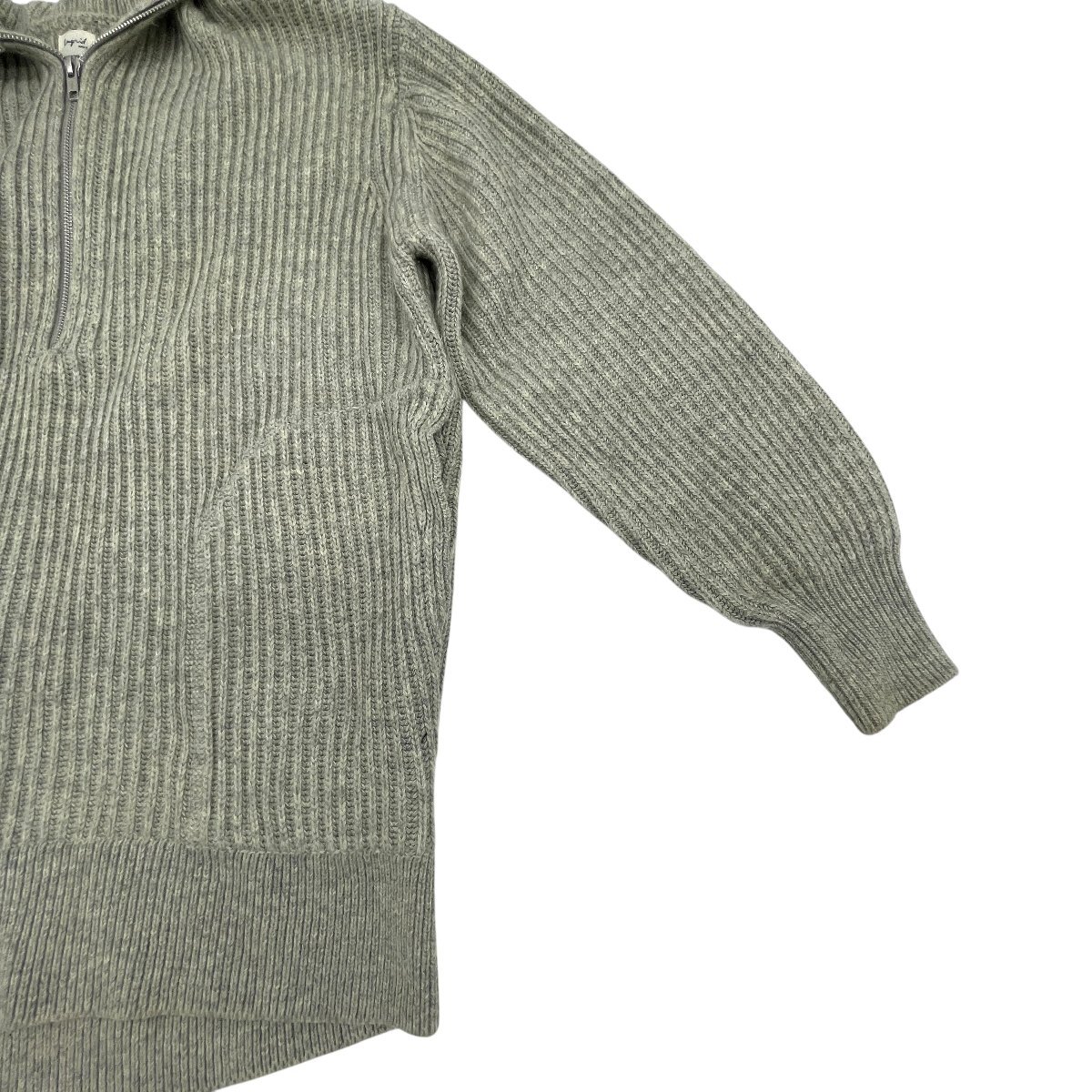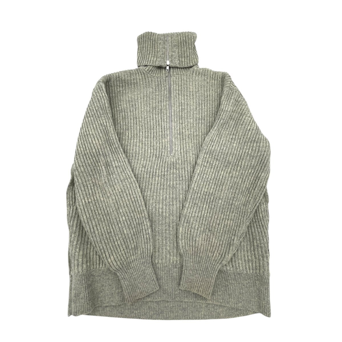 リブ編みのハーフジップアップデザインで、立ち襟が首もとをすっきり演出。ジップを少し開けて抜け感を出す着こなしもおすすめです。袖口に汚れあり 画像にあるものが全てとなりますので、状態等含めてご確認をお願いします。 |