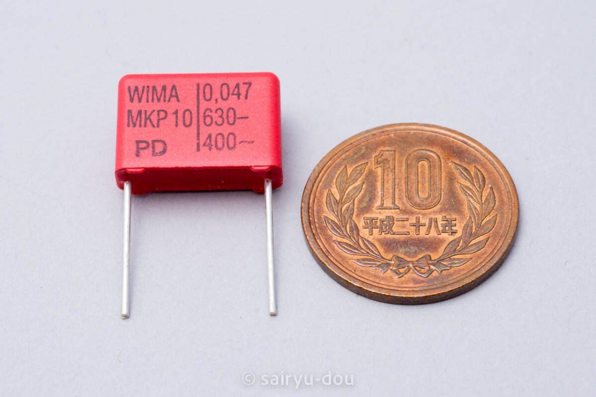 WIMAがオーディオ用のフィルムコンデンサとして推奨しているのは、誘電体にポリプロピレンを使用しているもので、静電容量範囲の小さな型式から順に、FKP02、FKP2、FKP3、MKP4、MKP10です。MKSシリーズは、誘電体にポリエステルを使っているので、電源制御用での推奨です
