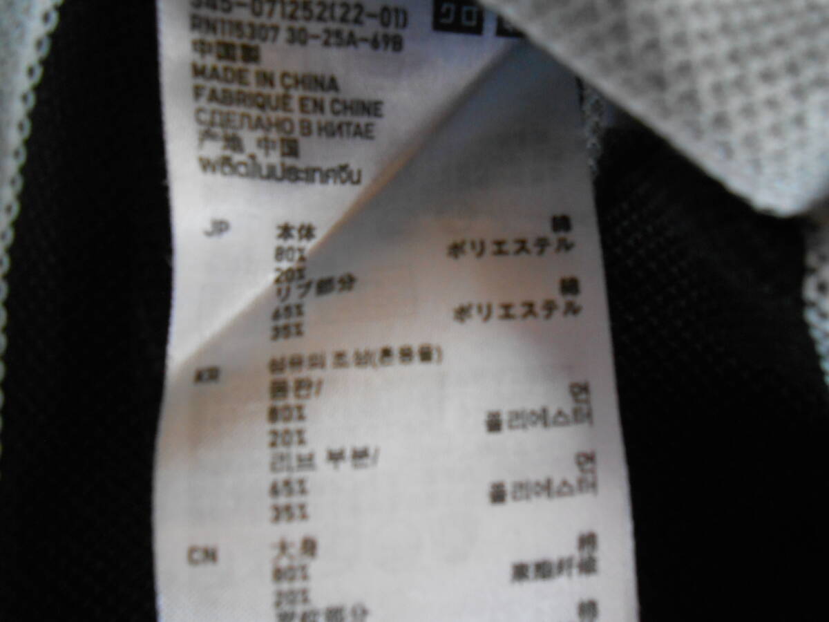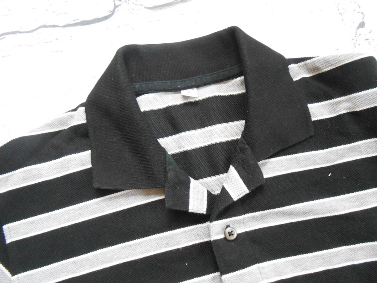 MA21-2◆UNIQLO/ユニクロ【Lサイズ】半袖ポロシャツ 鹿の子編み ドライ 吸汗速乾 黒×グレー ボーダー 状態良