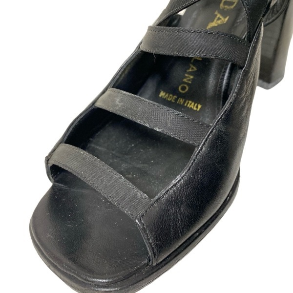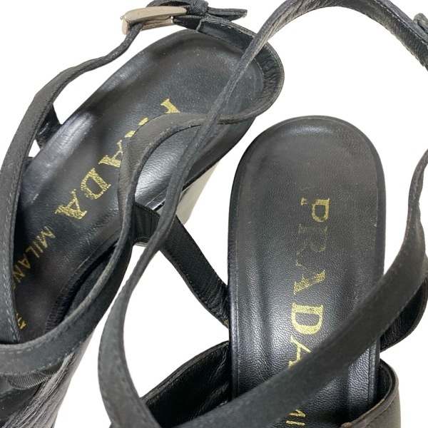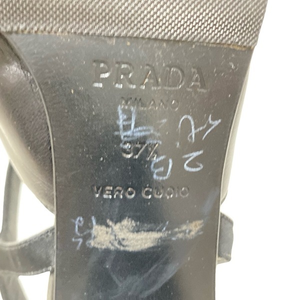 プラダ PRADA サンダル 37 1/2 - レザー 黒 レディース アウトソール張替済 靴
