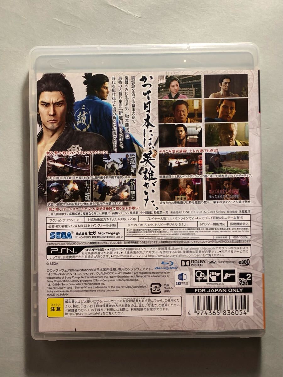 PS3フト 龍が如く 維新!「かつて日本には、英雄がいた。」SEGAです。ケースに擦れ、細かな傷、線傷、線状や点状のへこみ跡があります。ディスクのデータ読み取り面に目立つ傷や汚れなくきれいです。起動、動作確認済みです。写真のモノが全てです。新品をお探しの方や神経質な方の入札はご遠慮下さい。ノークレーム・ノーリターンで、お願いします。入札よろしくお願いいたします。 C06-413-071707