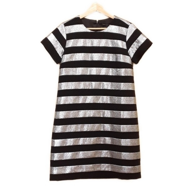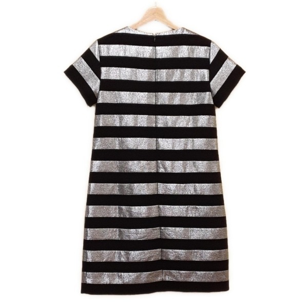 マークバイマークジェイコブス MARC BY MARC JACOBS サイズ0 XS - 黒×シルバー レディース クルーネック/半袖/ひざ丈/ラメ/ボーダー 美品
