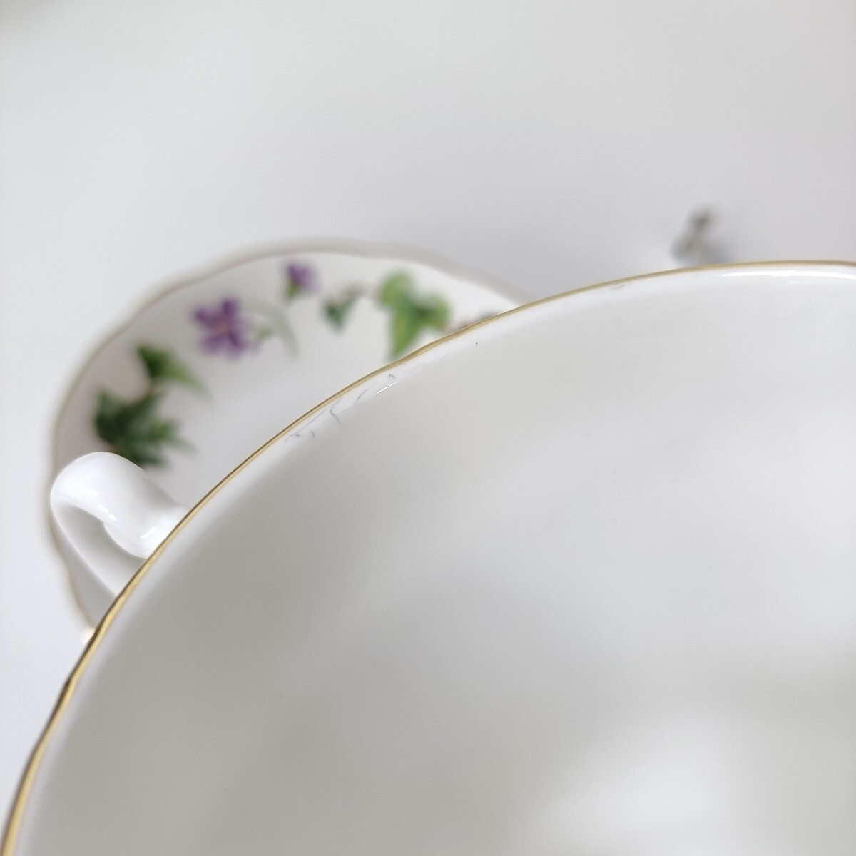 何回か使用されている印象。釉薬不純物や胴や口縁に銀器と擦れたメタルマークが多少見られます。白磁器にありがちですがこちらは専門的なクリーニング剤が必要ですのでそのままお渡しとなります。傷にはなっていません。その他保管品ですので微細な瑕疵はご了承ください。あくまで保管品につき現状渡しご理解ご納得の上ご入札ください。