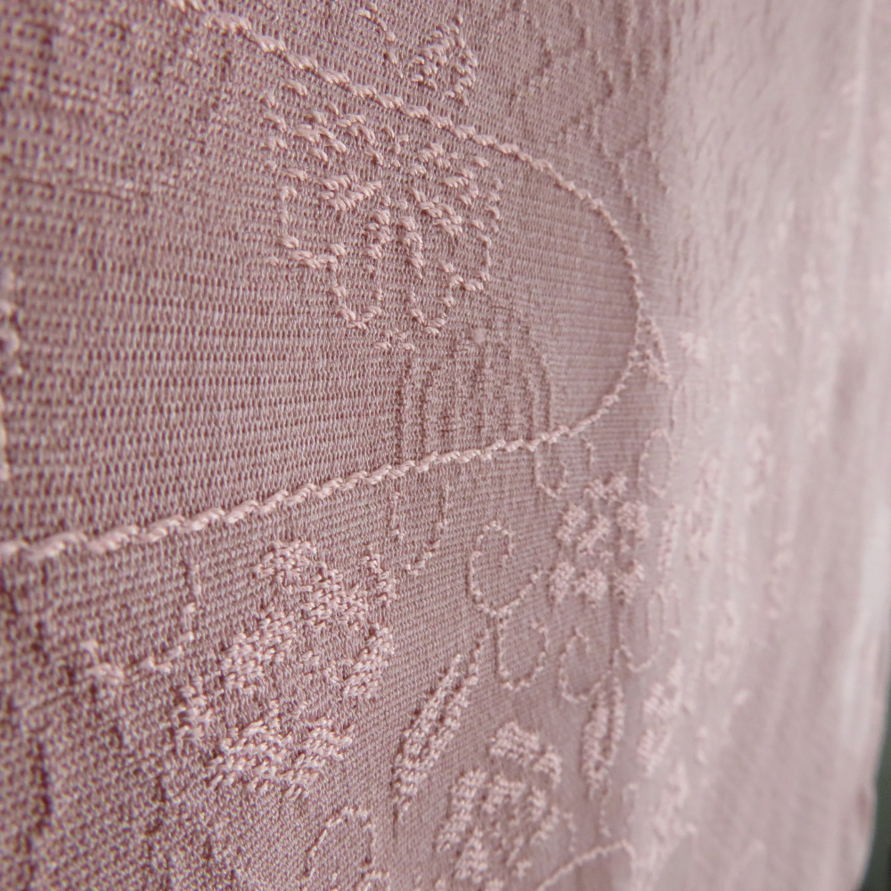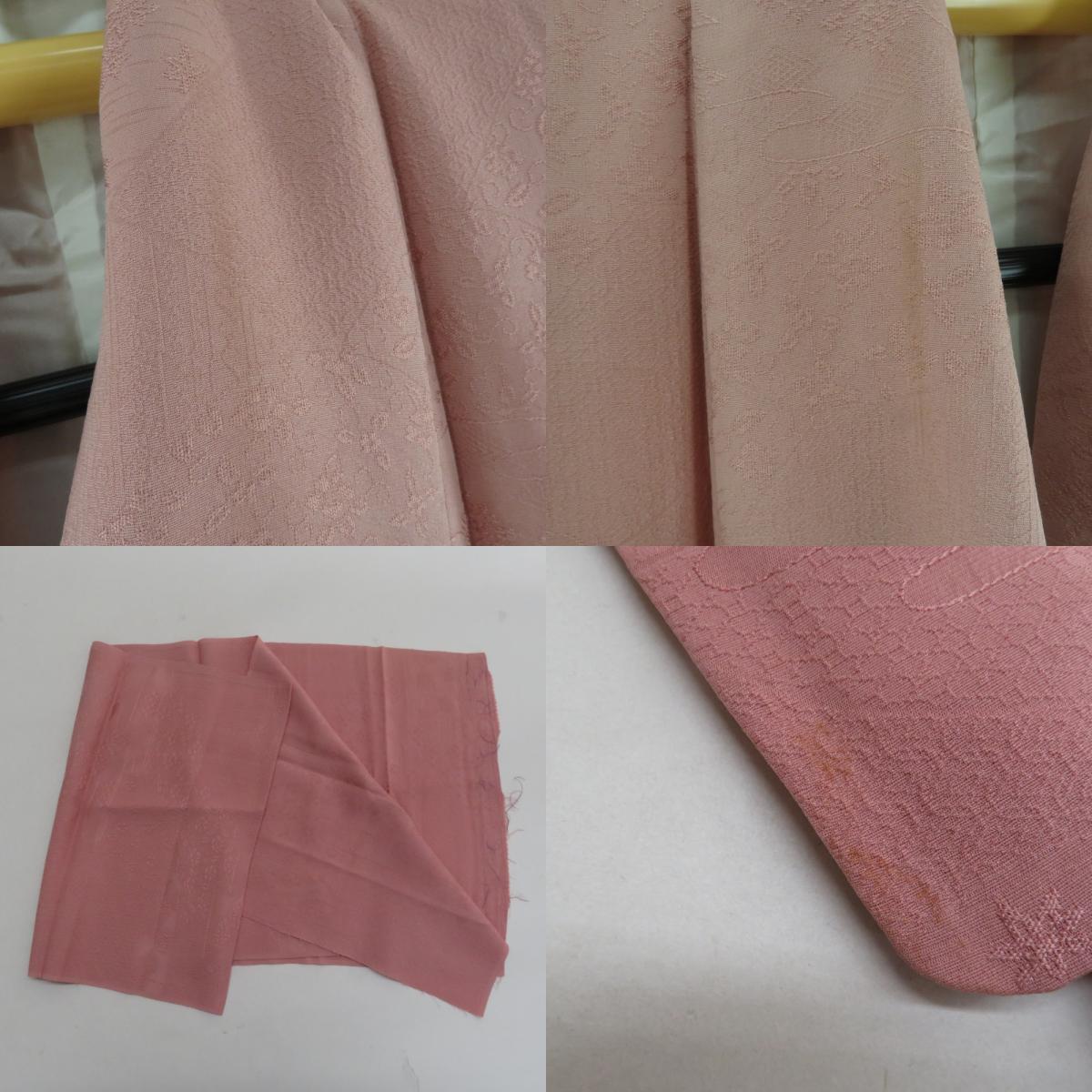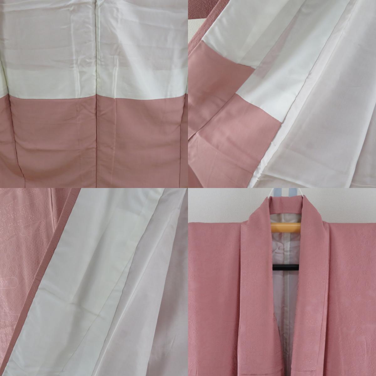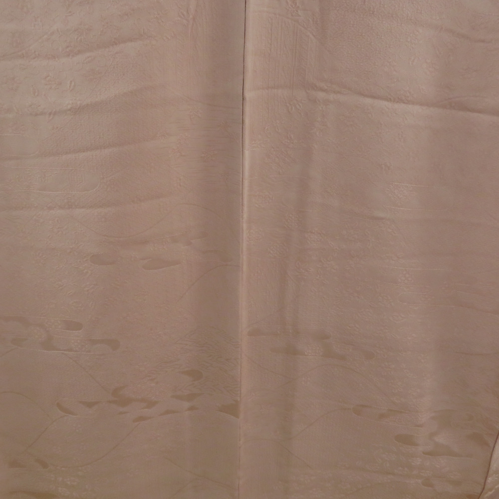 | 色無地 袷 パウダーピンク色 地紋入り 一つ紋 違い鷹の羽紋 正絹 広衿 仕立て上がり着物 身丈158cm |