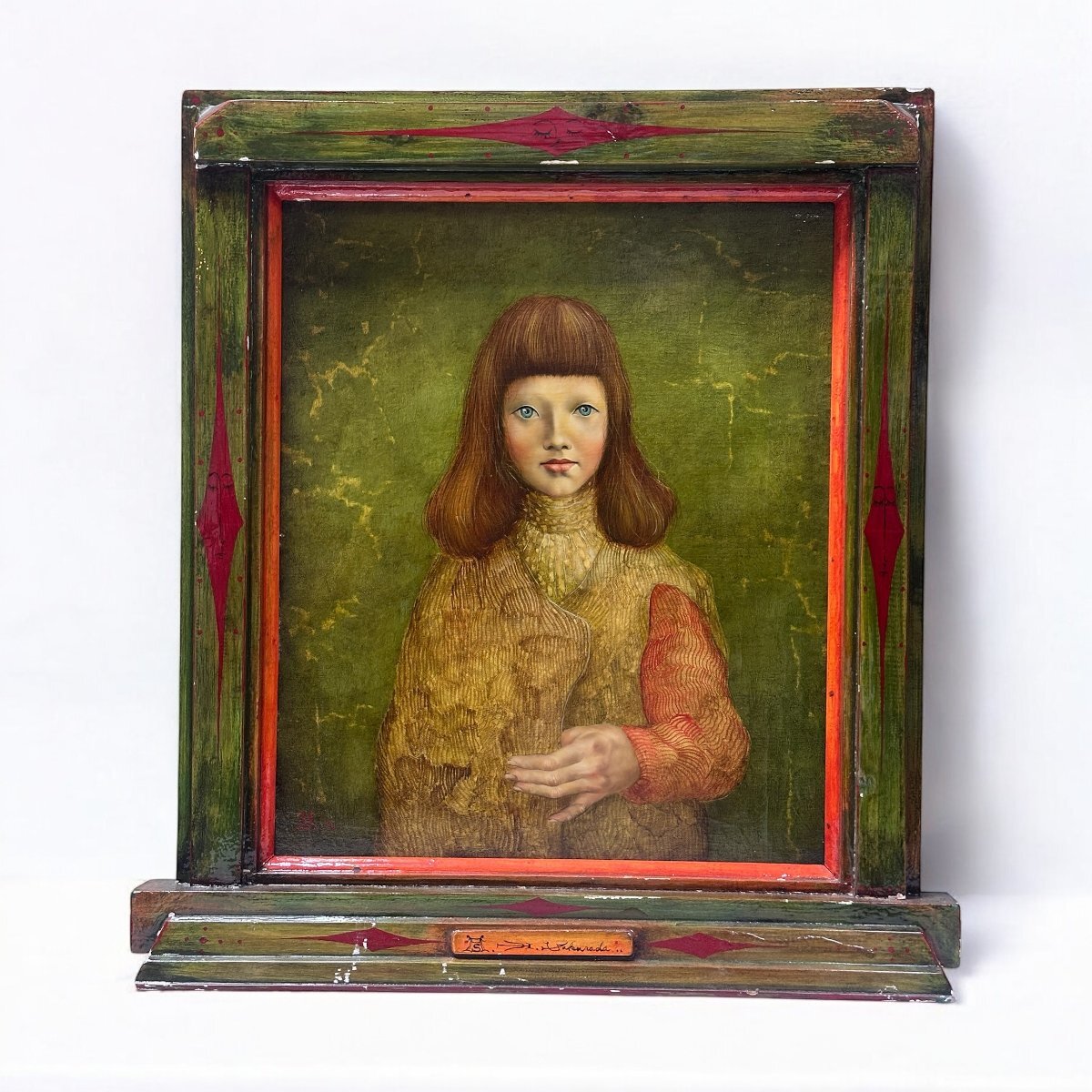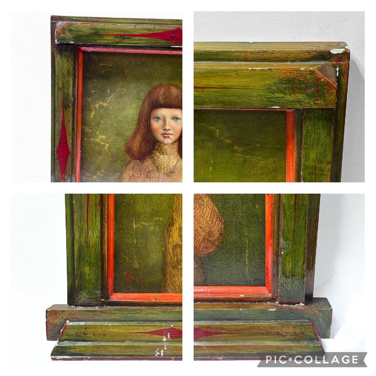 | 品名:少女 作家:桜田晴義 技法:油彩 付属品:タトウ箱 作品寸:H53×W44.5cm 作品状態:縁に若干剥がれがございます。 額縁寸:H71×W65cm 額縁状態:写真9.10に写しておりますが、欠け等の傷みが複数個所にございます。ご了承の上ご入札お願い致します。タトウ箱の留紐一部切れております。タトウ箱に汚れや破れがございます。 | |||